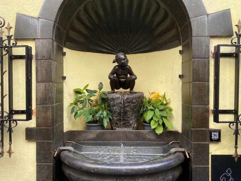 Vi tittade på Manneken Pis som är ett känt landmärke i Bryssel. Jag har inte sett honom tidigare och trodde att det skulle vara en stor staty. Så är inte fallet. Manneken Pis är en liten bronsfontänskulptur föreställande en naken liten pojke som kissar i fontänens bassäng. Den uppfördes i början av 1600-talet.