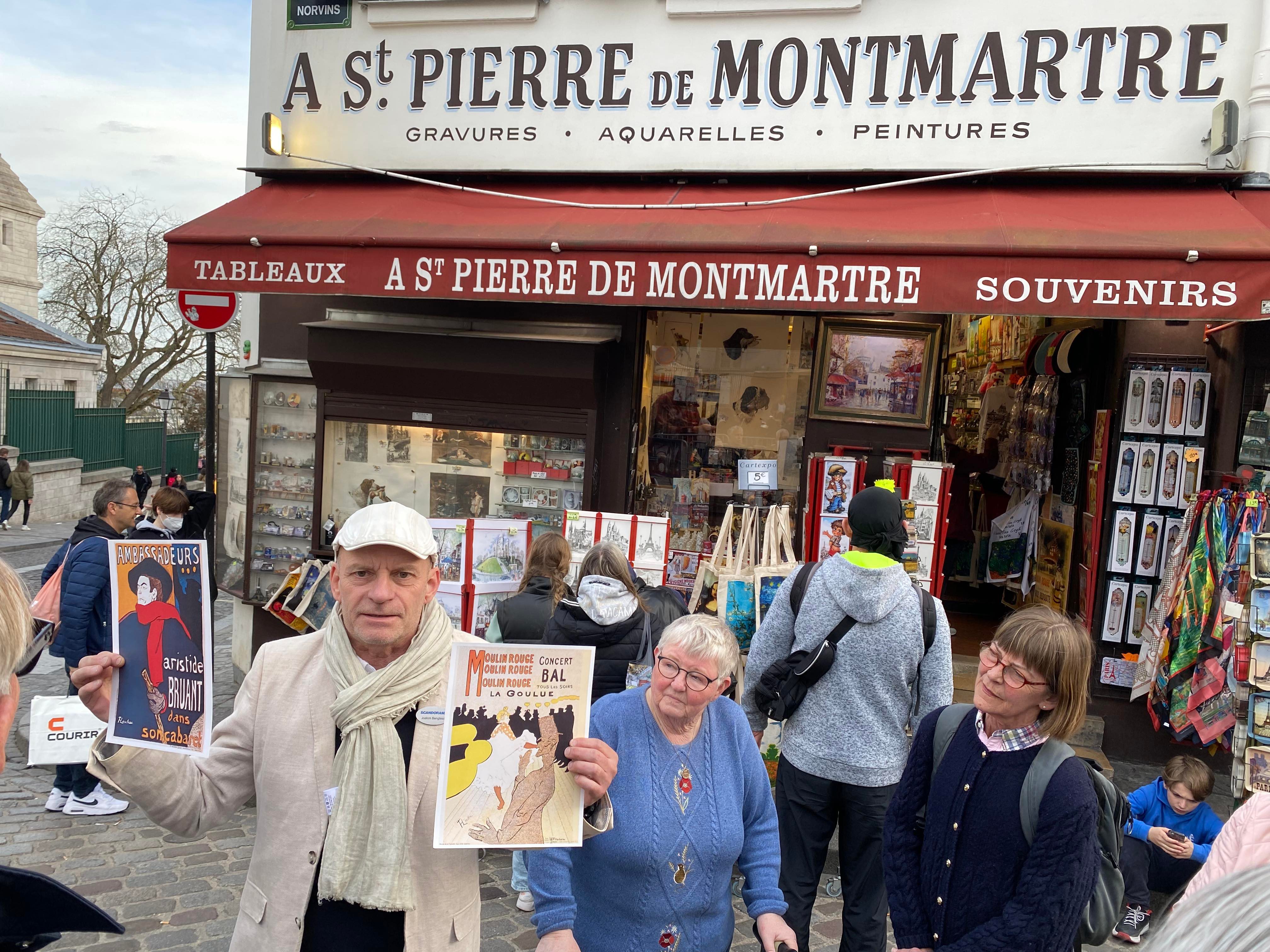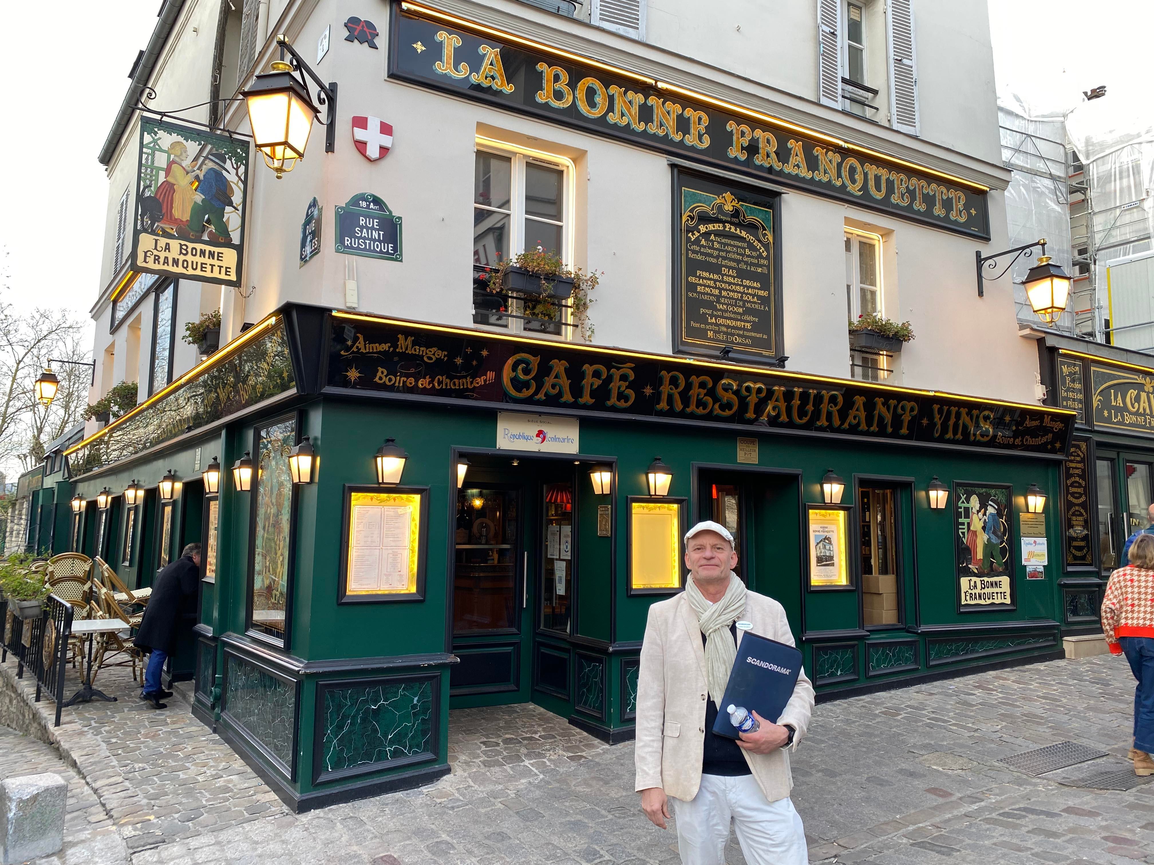 Trerätters middag intogs på La Bonne Franquette där det även bjöds på pianospel. Mätta, nöjda och glada gick flera av oss nedåt medan andra tog bergbanan. Här blev det en groupie med några av de positiva och glada resenärerna.