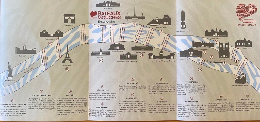 Efter ett par timmar hemma var det dags att köra ner till Seine och ta en båttur med Les Bateaux Mouches. Jag börjar med en liten film.