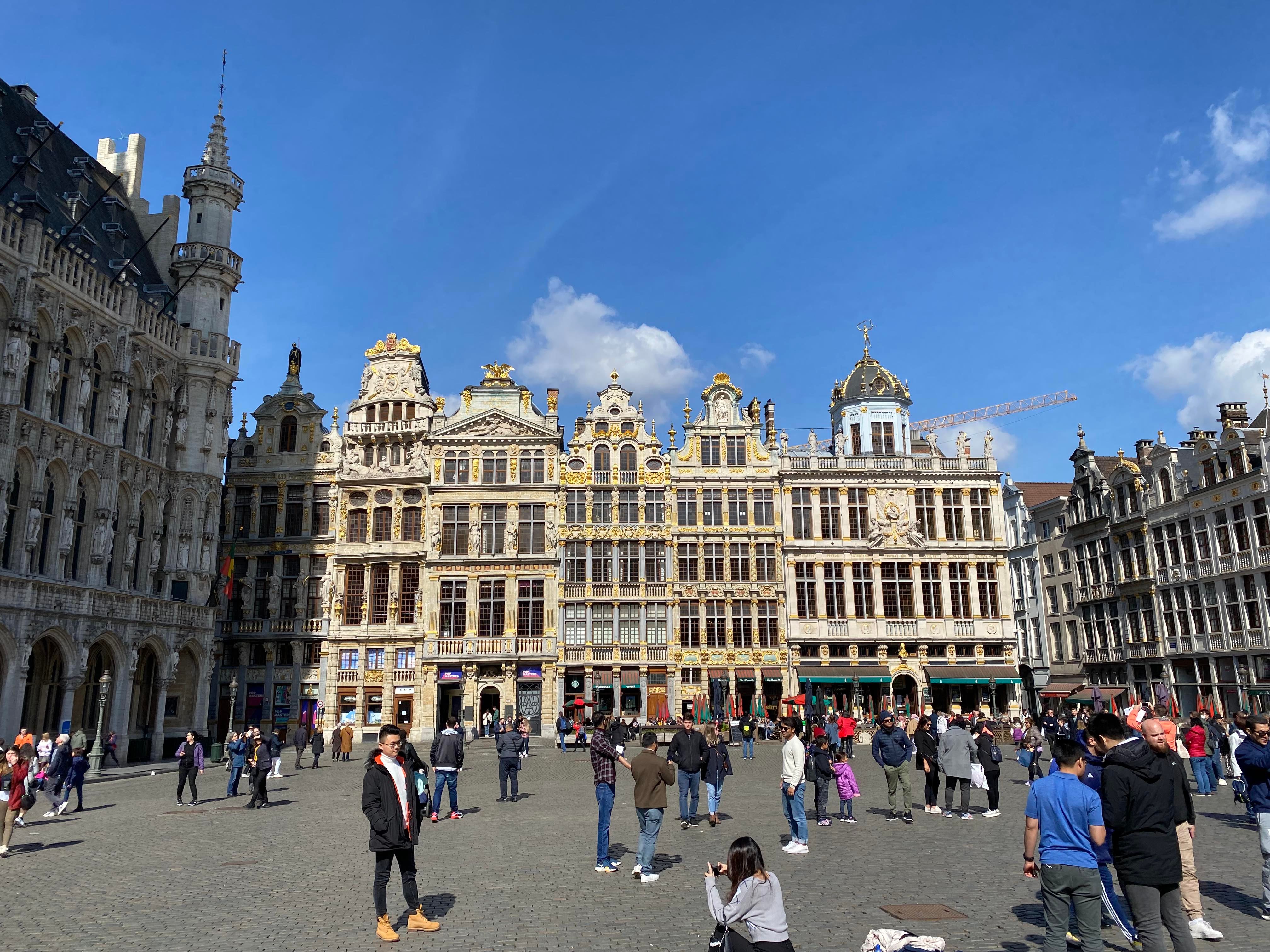 I tidig morgonstund styrde vi kosan mot Bryssel där vi gjorde en stadsrundtur. Vi såg bl.a Grande-Place, ett mycket vackert torg med gamla fina byggnader. Här finns bl.a. Hôtel de Ville (stadshuset) byggt i nygotisk stil och olika gillsehus. På bilderna nedan ser vi Hôtel de Ville och en länga med gilleshus. Alla husen är smyckade med guldstatyer, utsirade fönster och vackra tak. Längst till höger ligger La Maison des Boulangers. Det byggdes i nybarock 1697 av det rika och mäktiga bagargillet och kröns av en vacker kopparkupol. Huset rymmer idag torgets främsta bar, Le Roi d’Espagne.