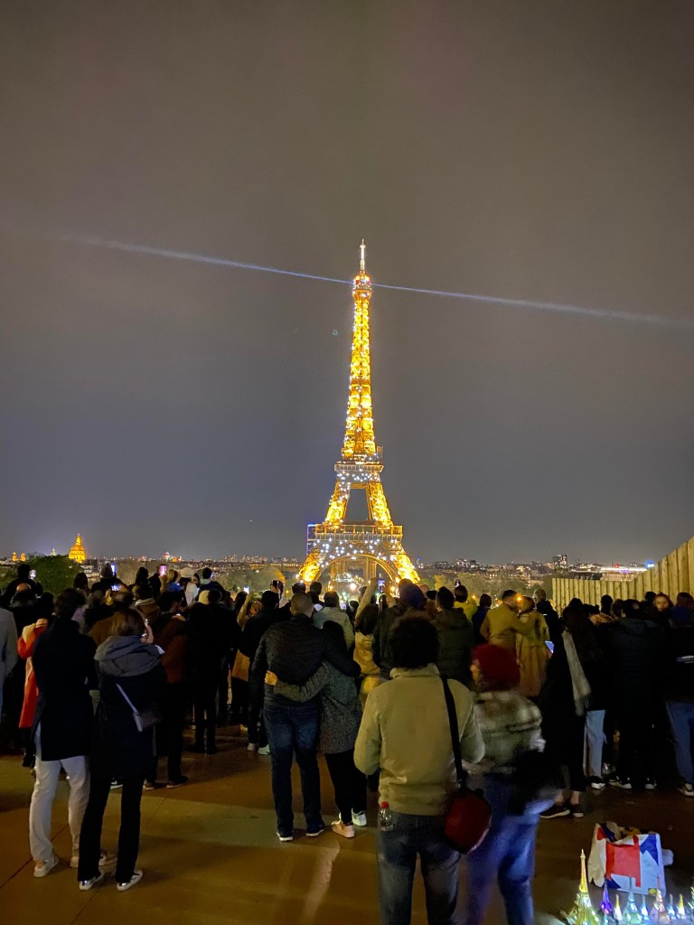 Efter bara en liten stund var det dags för den första utflykten – Se Paris glittra! Vi började med ett restaurangbesök med trerätters middag för att sen ge oss ut med buss i den vackra kvällen. En av höjdpunkterna var när vi åkte på Champs-Elysées upp mot Triumfbågen och samtidigt spelade Marseljäsen och Champs Elysées med Joe Dassin.