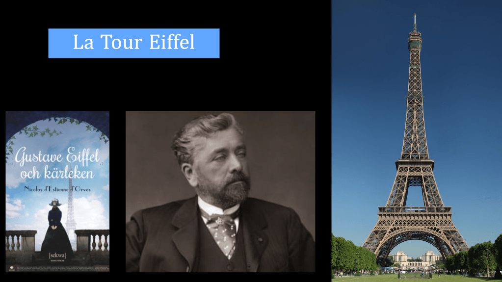 När jag var i Paris gav en av resenärerna mig ett boktips och det var denna bok, Gustave Eiffel och kärleken. Den gavs ut i september 2021 och imorgon den 6 maj har den premiär på bio. Den är en av Frankrikes mest påkostade filmer. Så fort jag läst ut boken vill jag se filmen, kanske redan i helgen.