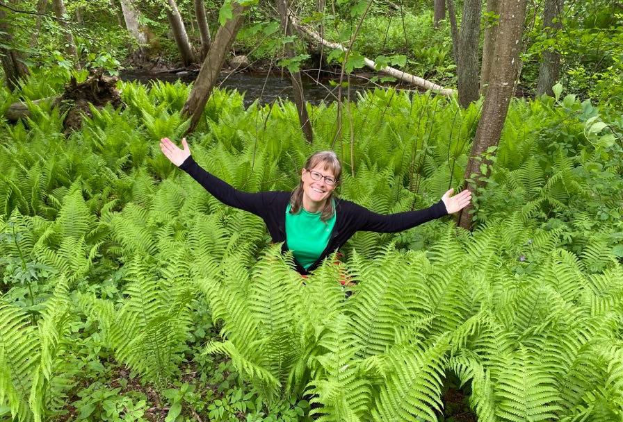 Det finns så många olika gröna nyanser i naturen just nu. Grönt är skönt. Här har jag satt mig i ett hav av ormbunkar.
