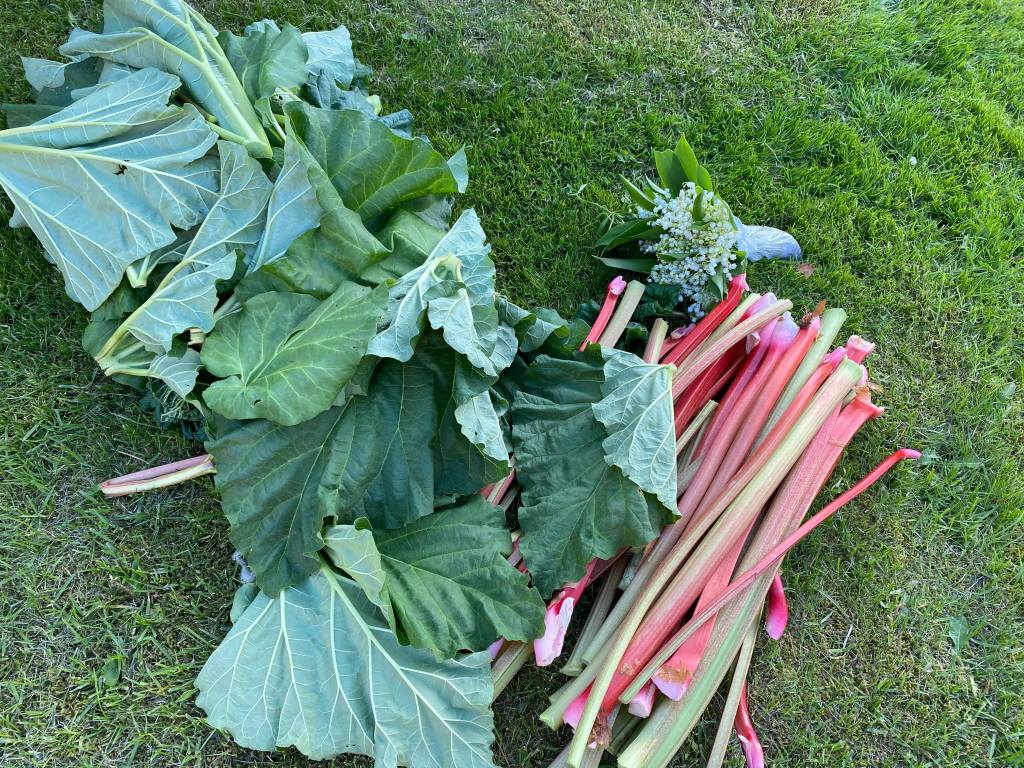 Gunnel bjöd in mig på te och mackor. Det blev en trevlig pratstund som alltid. Jag fick också plocka så mycket rabarber jag ville ha. Jag försåg mig ordentligt. De har mycket rabarber. När jag gjort dem iordning här hemma blev det 4,3 kg så det blev 8 påsar med 500 gram i varje (lagom till en paj) och 300 g i en påse. Jag tycker mycket om rabarbermarmelad. Jag gjorde det för första gången förra året och det var jättegott. Rabarberdryck är också helt underbart. Jag har mycket kvar i frysen sen förra året. Jag ska använda upp den innan jag gör mer. Den tar mycket plats i frysen så därför fryser jag in rabarberna direkt nu så kan jag göra något av dem senare under året.