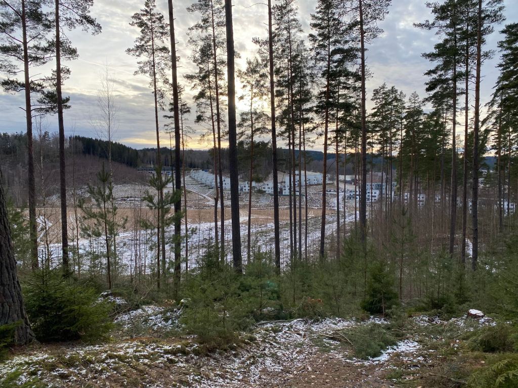 En kompis och jag tog en telefonpromenad idag. Det blev en lång promenad på 1 tim och 50 minuter. Vi hann avhandla både det ena och det andra medan vi promenerade var och en på sitt håll. Jag hann gå över kullar och nedför stigar och så upp igen i backar i skogen och genom bostadsområden. Det är underbart att komma ut i friska luften . Här har jag stannat till ganska högt upp på Hovslätts Ängar där det just avverkats. Här ska bostäder byggas inom kort. Bäst att passa på att vara här och vandra och fotografera så länge man har denna utsikt.