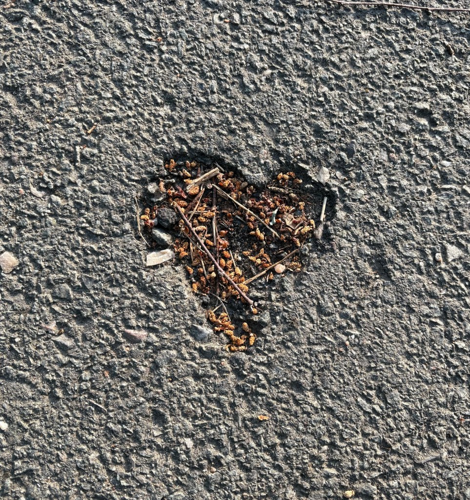 Efter jobbet tog jag en längre promenad och njöt av naturen. Rätt som det var fick jag se detta hjärta på vägen. Vilken fin kärlekshälsning! Det finns mycket att upptäcka när man är ute på promenad.