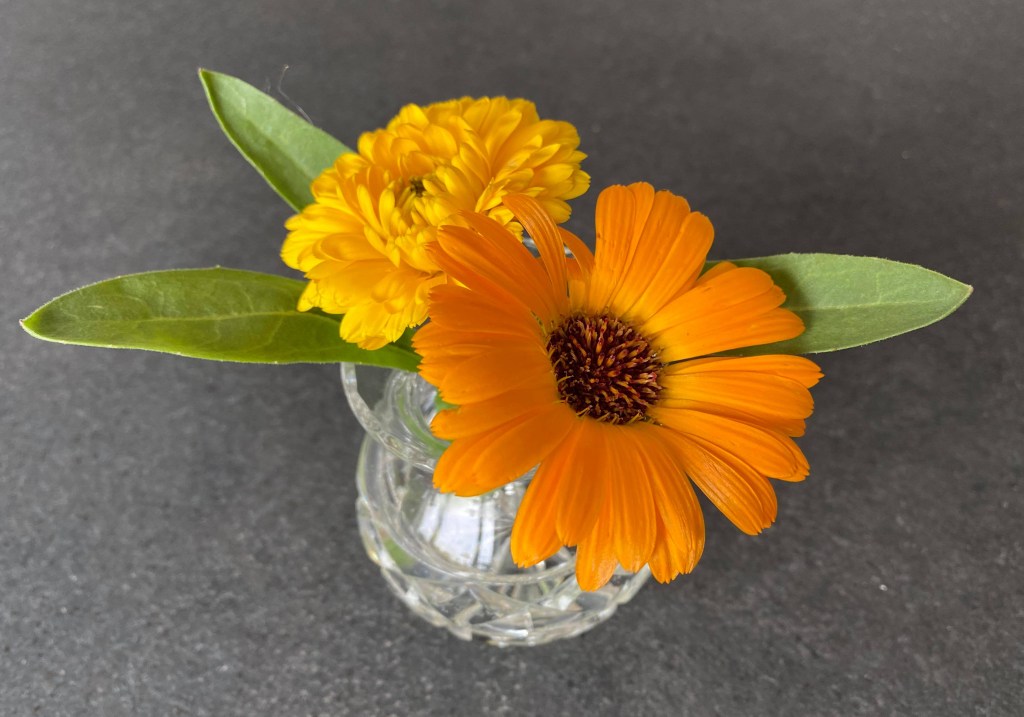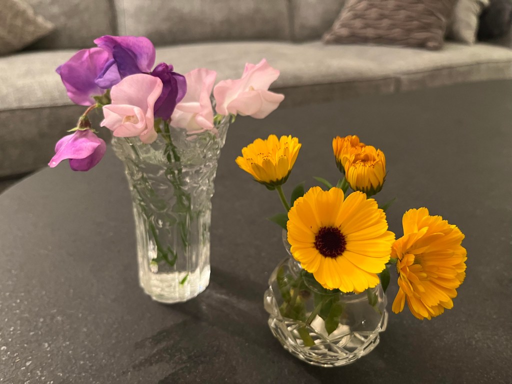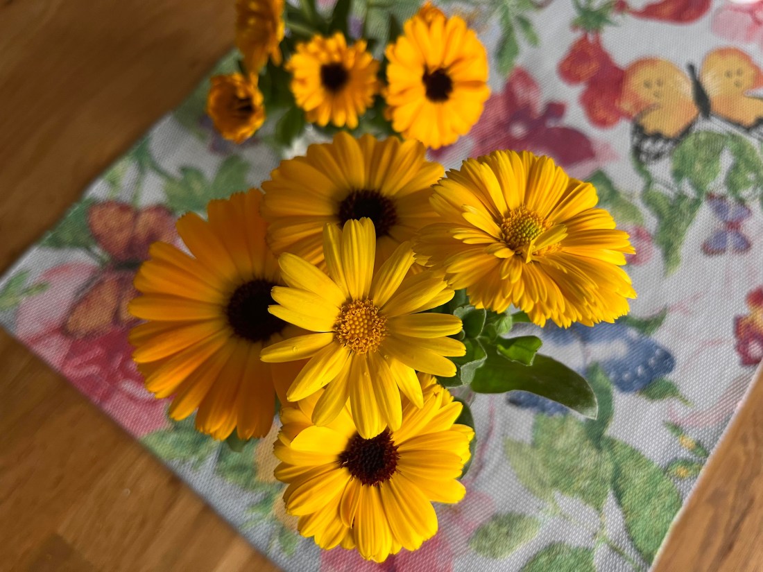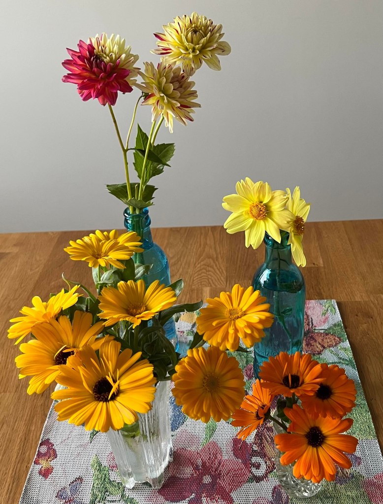 De flesta blommor i trädgården är nu överblommade och jag har gjort det mesta i ordning inför vintern men ringblommorna blommar fortfarande. Jag plockar små buketter som sprider glädje här inne. Livskvalitet för mig. 🧡 🧡 🧡