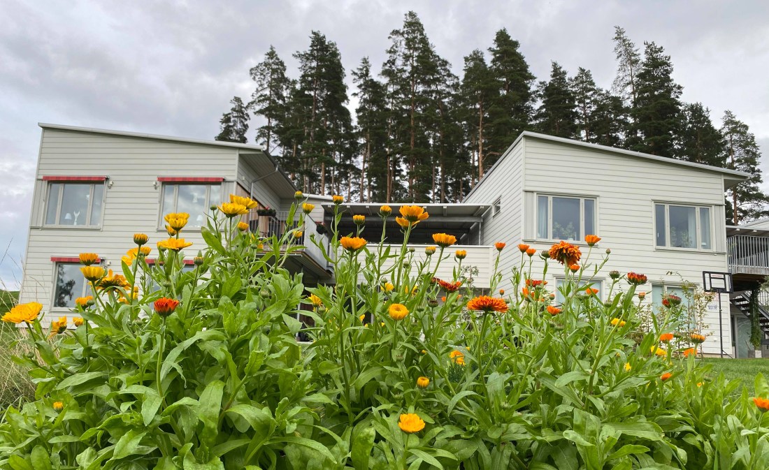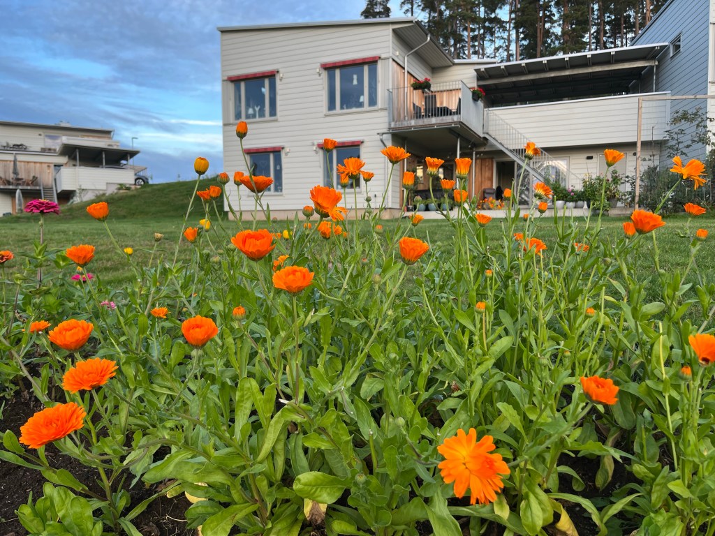 Ringblommorna blommar för fullt. Förra året kunde jag plocka in buketter ända till helgen före första advent. De röda pelargonerna som lyser så vackert på balkongen blommar ännu lite grand.