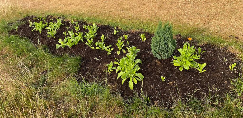 Om du undrar vad som är i mitten av ”blomlandet” kan jag berätta att det är en cypress/julen som jag planterade för en tid sen. Jag har sparat den sen i julas och ville testa att plantera ut den. Vi får se hur det går.