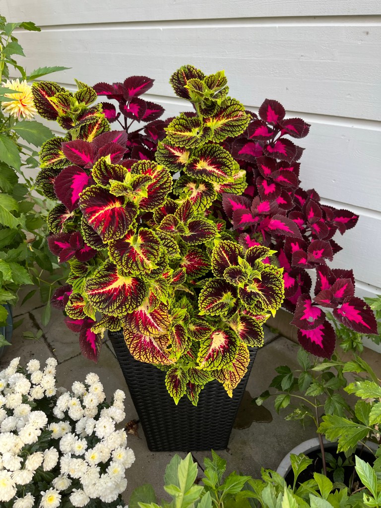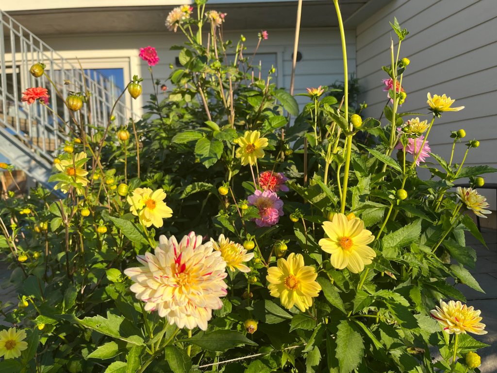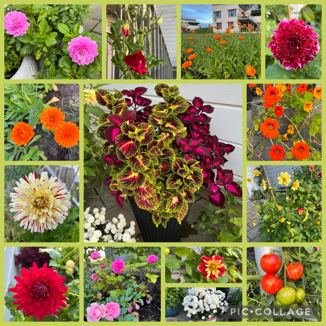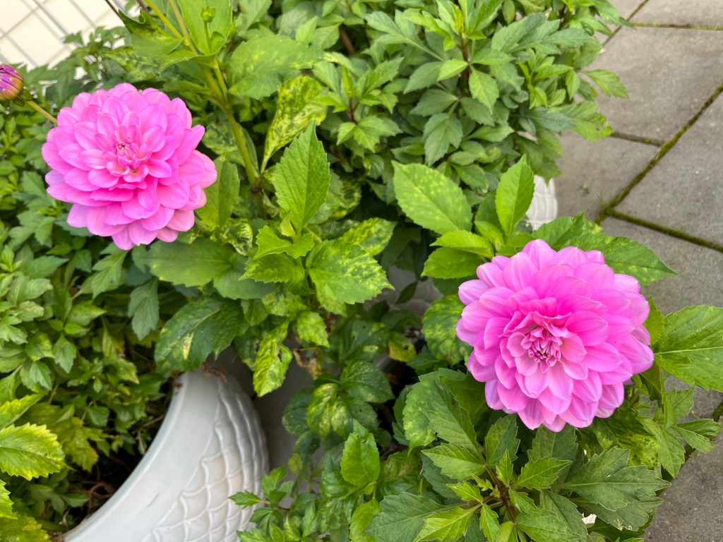 Palettbladen som jag planterade ut i början av sommaren växer och frodas. De är otroligt dekorativa. Mina olika dahlior blommar för fullt. Det kommer nya blommor hela tiden.