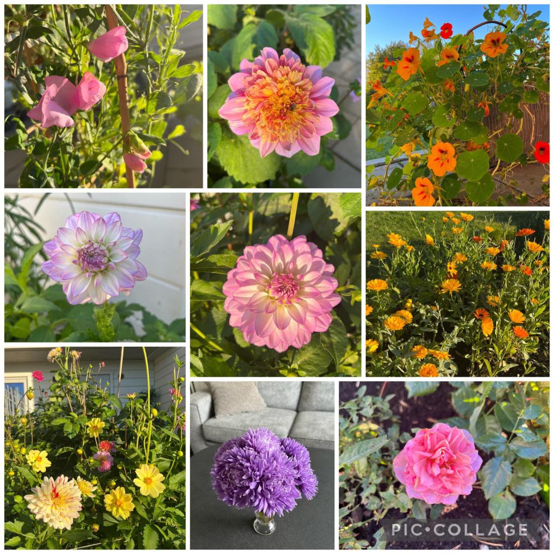 Det är den 3 oktober och ingen frost är i sikte. Jag är så glad för att jag får behålla min underbara blomsterprakt en tid till. Efter jobbet var jag ute och klippte avenbokshäcken som jag delar med grannen. Det var snabbt gjort. Den har inte vuxit sig så stor än. Solen sken och jag förundrades över alla blommor och tog mig en liten fotorunda. Jag njuter verkligen av mina vackra blommor. De förgyller livet.