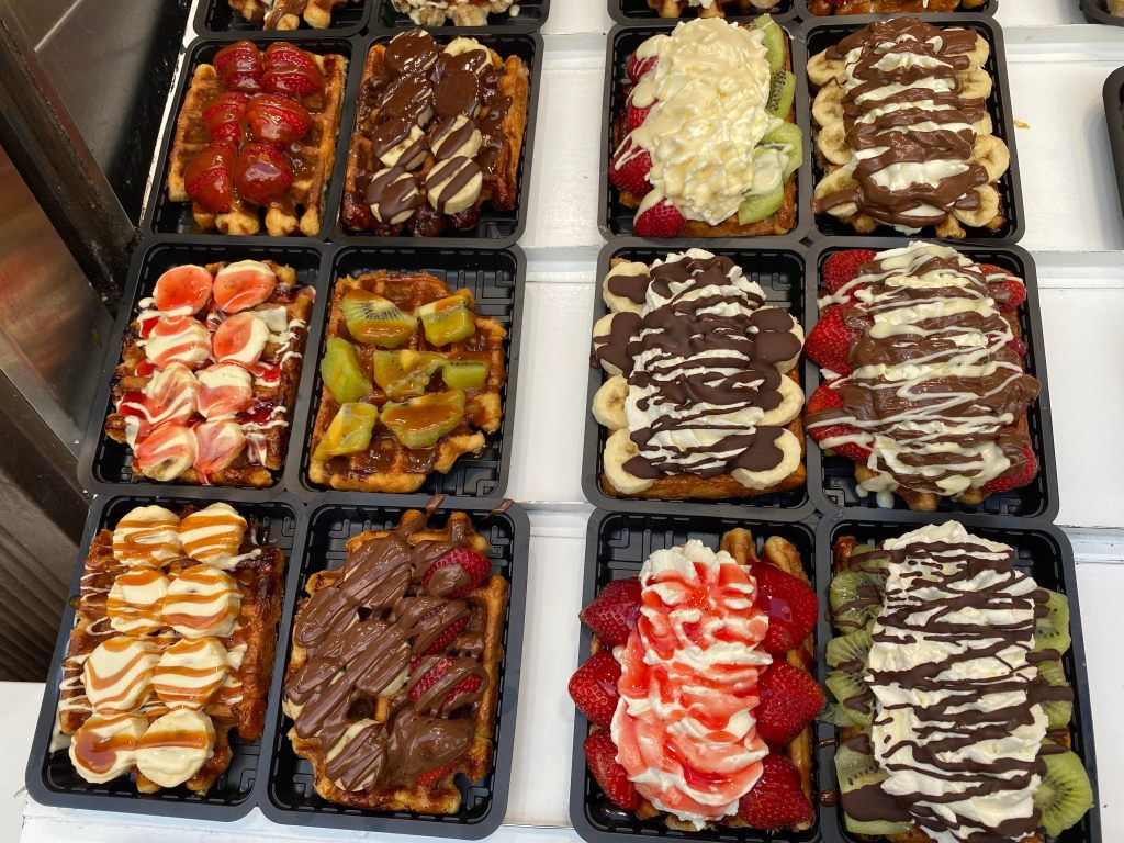 Manneken Pis, en kissande pojke har blivit en symbol för Bryssel. Det finns också en kissande flicka, Jeanneke Pis, men hon omnämns inte ofta i turistbroschyrer. Själv tycker jag att hon är minst lika fin som Manneken Pis. Det är roligt att gå och titta i de små butikerna och att se de läckert garnerade våfflorna är en fröjd.