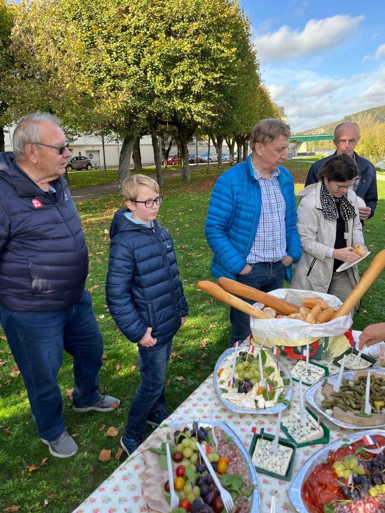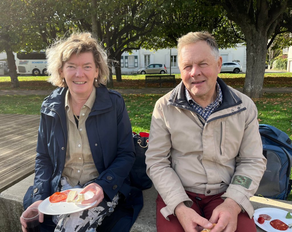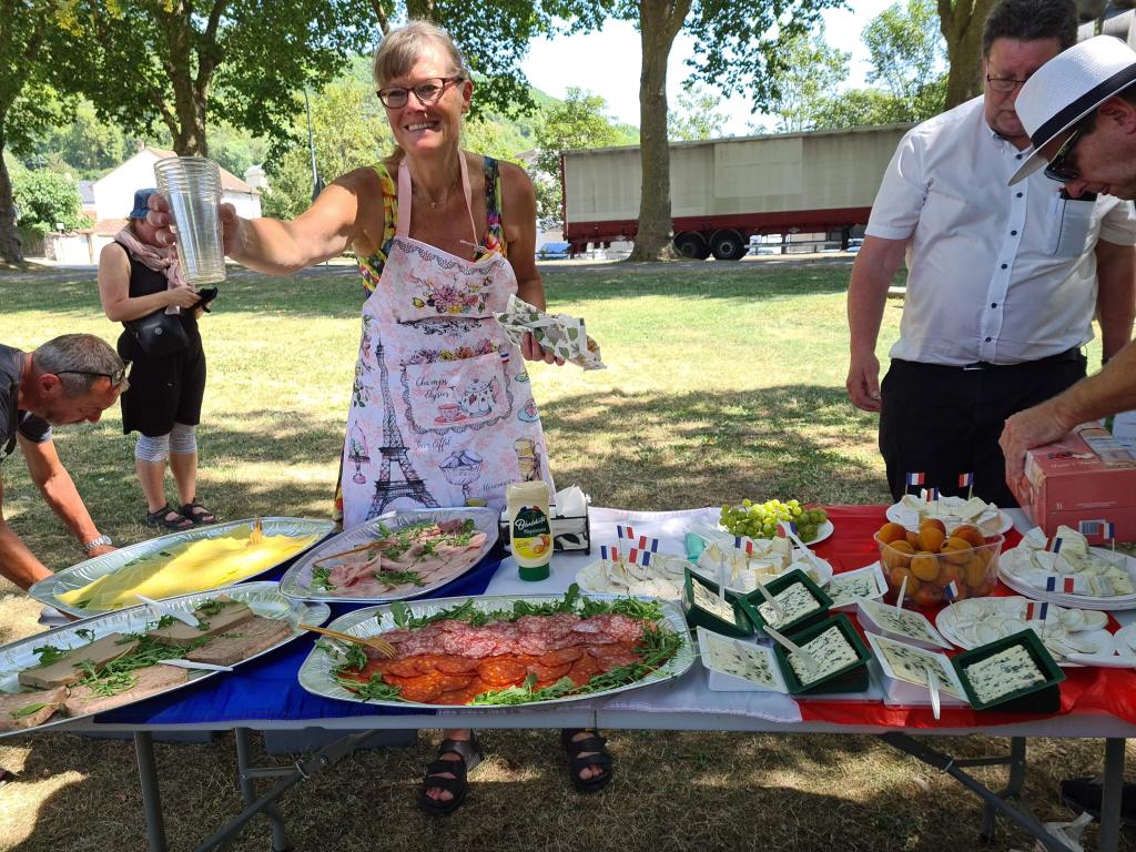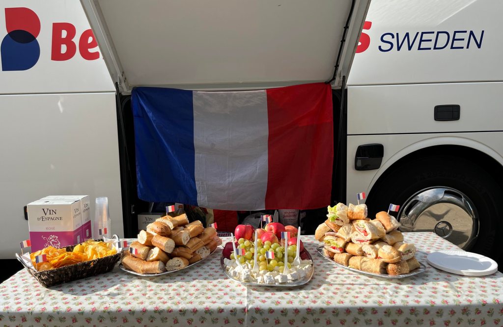 Det är jätteroligt att göra denna picknick för resenärerna uppskattar den mycket. Jag tycker också att det är jättegott och trevligt. Vi spelar fransk musik hela tiden så det blir riktigt stämningsfullt. Vi var kvar ganska länge och åt och njöt av allt det goda denna härliga dag.