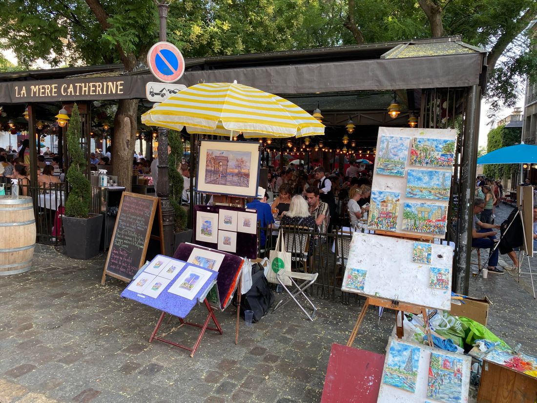 Vi gick sen vidare till Place du Tertre. Här sitter konstnärer och tecknar av människor, målar och säljer sina verk.Här finns också mysiga caféer och restauranger.