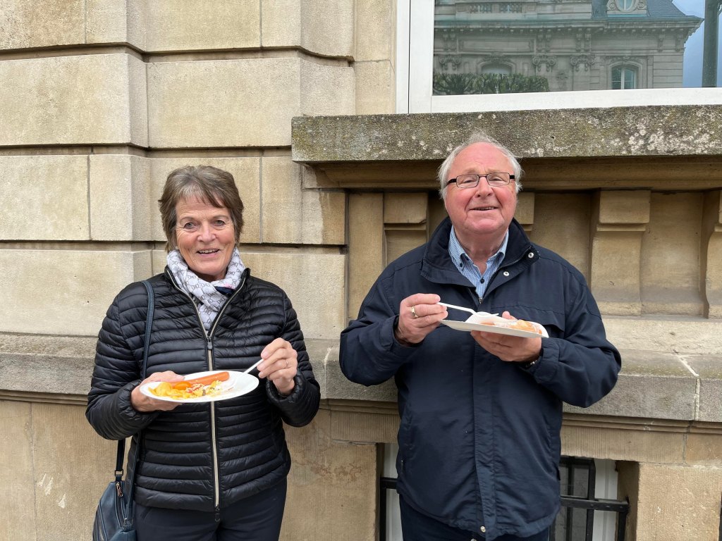 Det regnade lite grand men det var inga sura miner för det. Det går ju t o m bra att äta sin lunch på en soptunna när man är i fina Luxemburg. Med ett glatt humör fixar man det mesta.