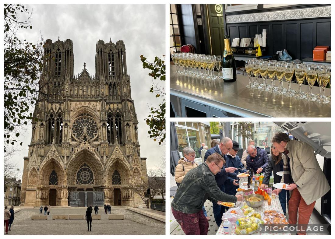 Idag lämnade vi vårt älskade Paris för denna gång. Alla var i god tid så vi körde redan kl 06.49. Det blev en fin morgontur ut ur Paris. Eftersom vi hade så god tidsmarginal kunde vi stanna till en stund vid katedralen i Reims och den som ville kunde gå in och titta. Här i katedralen kröntes de flesta av Frankrikes kungar förr i tiden. Napoleon var ett undandag. Han kröntes i Notre-Dame i Paris. Han var så ivrig när han skulle krönas så han slet kronan från påvens hand och satte den själv på sitt eget huvud.