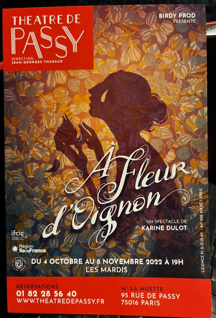 På kvällen var jag ute och roade mig på egen hand med en god vän som heter Anna. Hon är parisiska men har bott i Jönköping tidigare. Jag lärde känna henne genom en gemensam bekant och vi har träffats en del när hon varit i Sverige. Anna bjöd mig på teater och jag bjöd henne på fika på Les Grands Boulevards efter föreställningen.