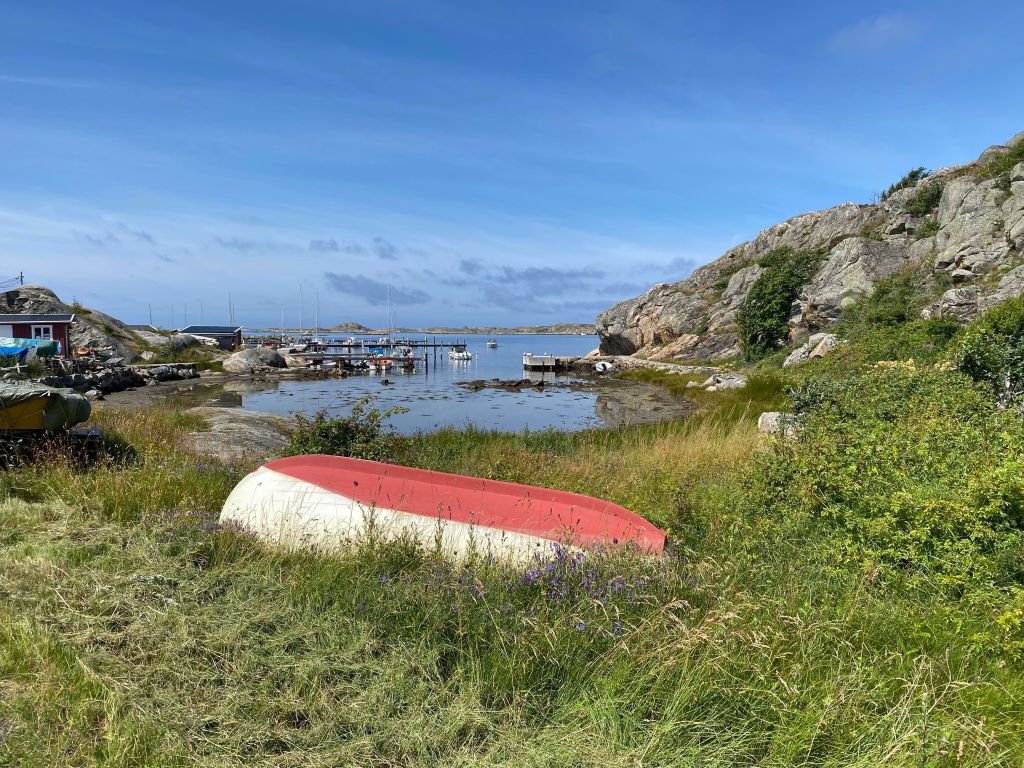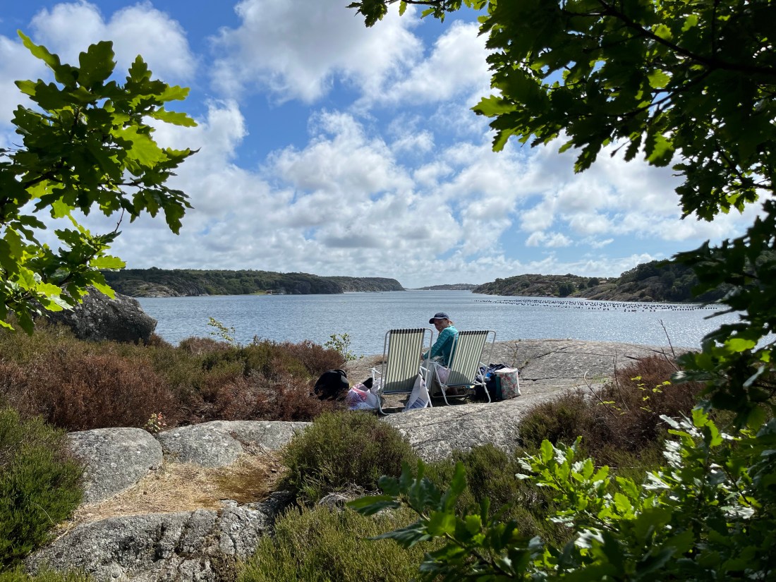 Idag åkte vi till Nösund här på Orust. Vi hade fått rekommendationer om en bra badplats där det skulle vara lä. Det blåser mycket här just nu och det är inte skönt att ligga och sola i blåsten. Vi fann oss väl tillrätta uppe på en klippa och där hade vi det bra i 5-6 timmar. Vi läste och sov, pratade, åt och fikade. Tyvärr blev det inget bad för vi tyckte att det var för kallt men det har varit en riktigt skön vilodag.