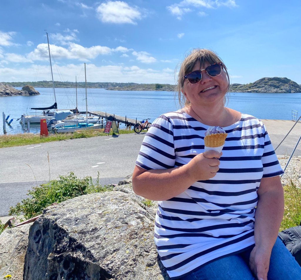 Vi köpte glass som vi satt och avnjöt på en klippa i perfekt väder. Det kan inte bli bättre.