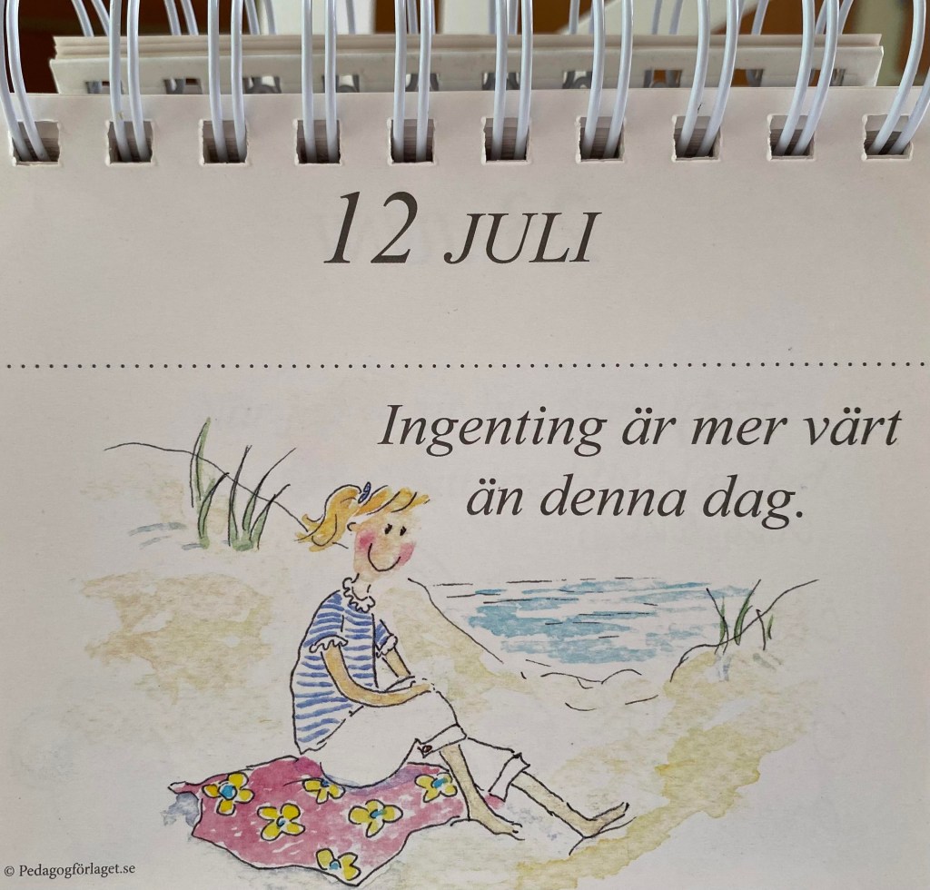 Jag avslutar med en bild från Mia och Bengts almanacka från Pedagogförlaget. Vilken passande text: Ingenting är mer värt än denna dag.