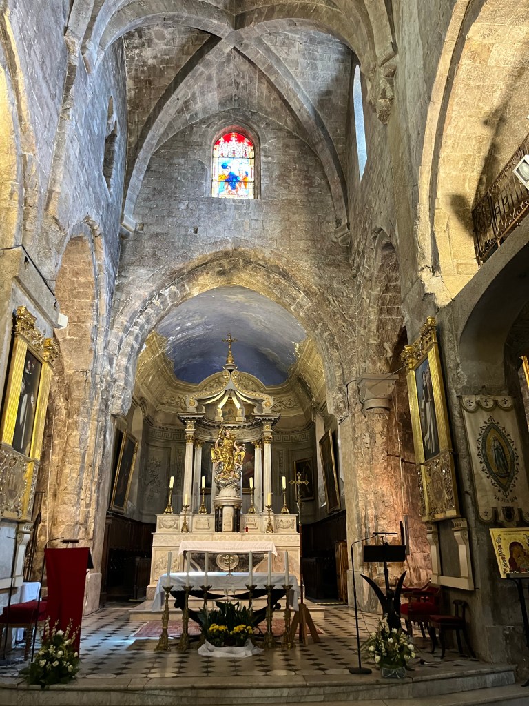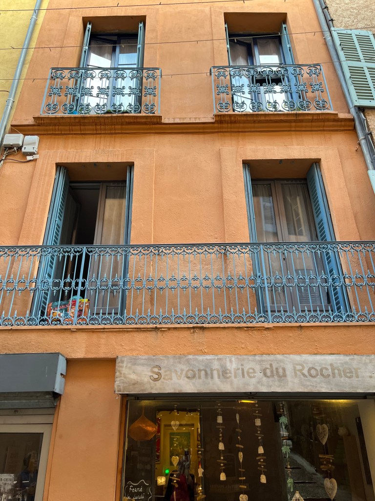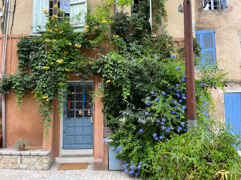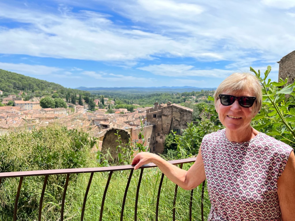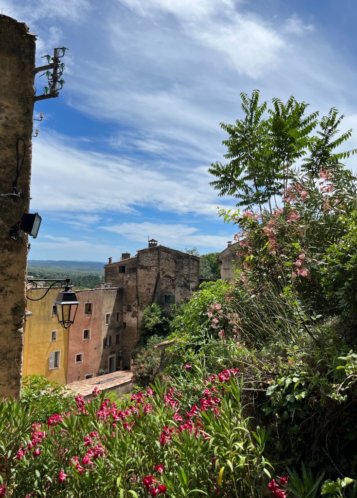 Från Nice tog jag bussen till Brignoles där min goda vän Yvonne mötte mig. Vi hämtade min lilla hyrbil innan vi åkte hem till pittoreska Cotignac som blir min boplats för en vecka. Min hemvist är bakom de blå övre balkongerna. Yvonne kommer från Jönköping men bor här i Provence sen ett och ett halvt år tillbaka.