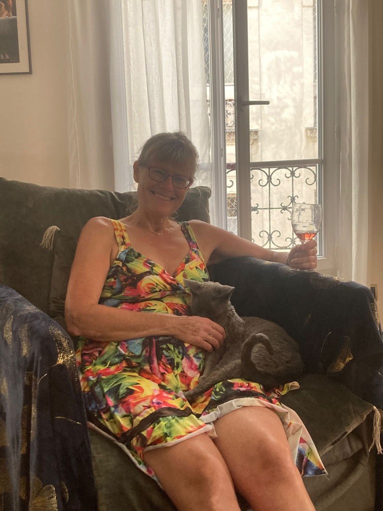 Jag var bjuden till min goda vän Anna som är Parisiska och bor strax intill Jardin des Plantes. Hon har bott ett år i Jönköping och då träffades vi ibland. Hon har också kommit tillbaka vid några tillfällen och vi har haft möjlighet att ses. Jag träffade henne när jag var i Paris i höstas men jag har inte varit hemma hos henne tidigare. Hon har en härlig lägenhet och där bor också hennes supersöta katt, en Devon Rex, som jag fick bra kontakt med. Han satt hos mig hela tiden vilket var urmysigt och avkopplande. Jag tycker inte att katter är så tillgiva men denna katt var det. Anna bjöd på gott fika och vi fick prata några timmar.