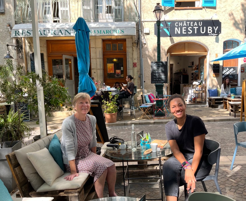 Jag gick till bageriet som ligger strax intill och köpte ett gott bröd. Efter frukost gick vi ut på byn för att träffa Marie, en god vän till Yvonne. Vi satte oss på ett café på Cours Gambetta. Det är en plats mitt i byn där det finns affärer, restauranger och caféer. Där är en underbar miljö och jag njöt varje sekund.