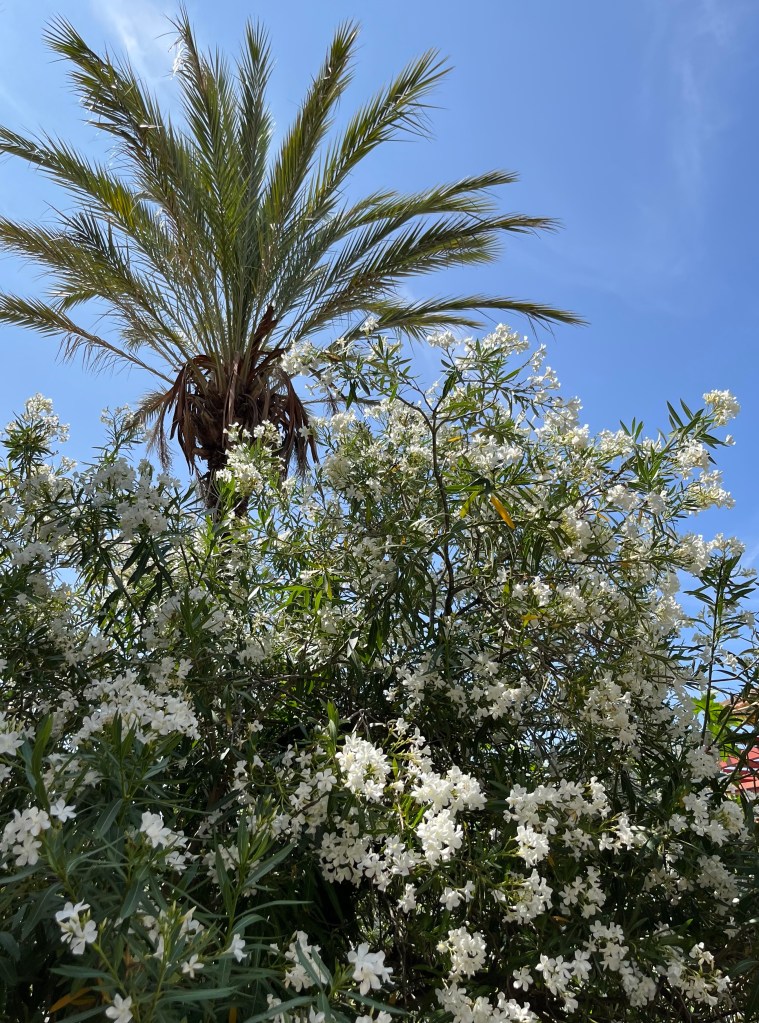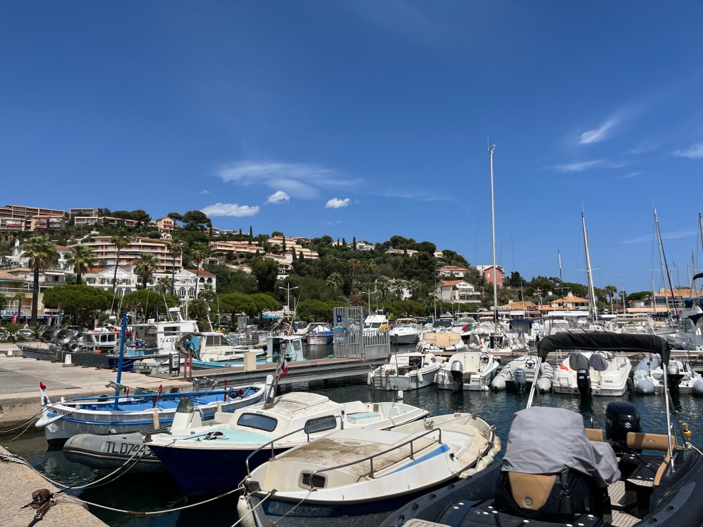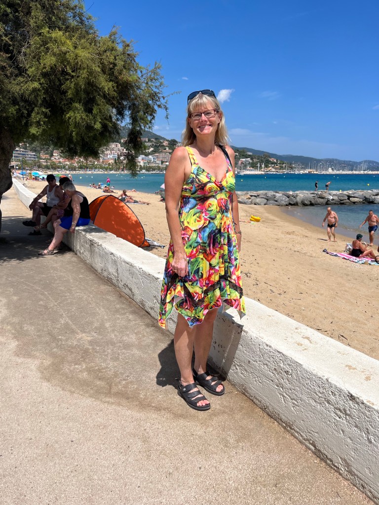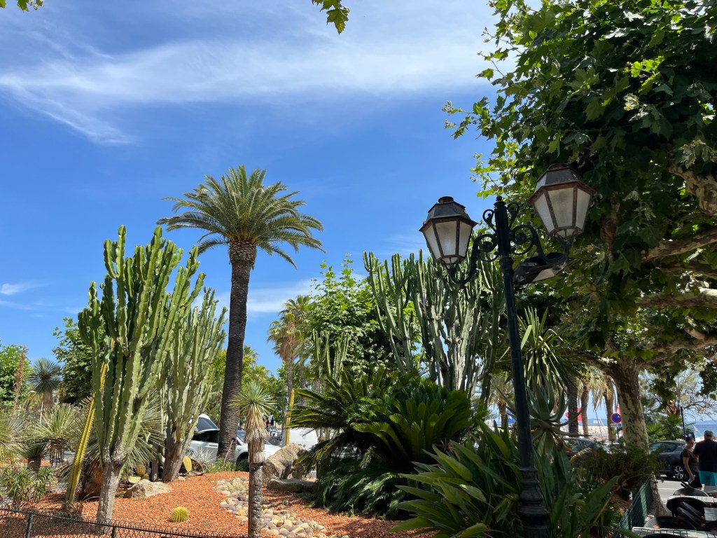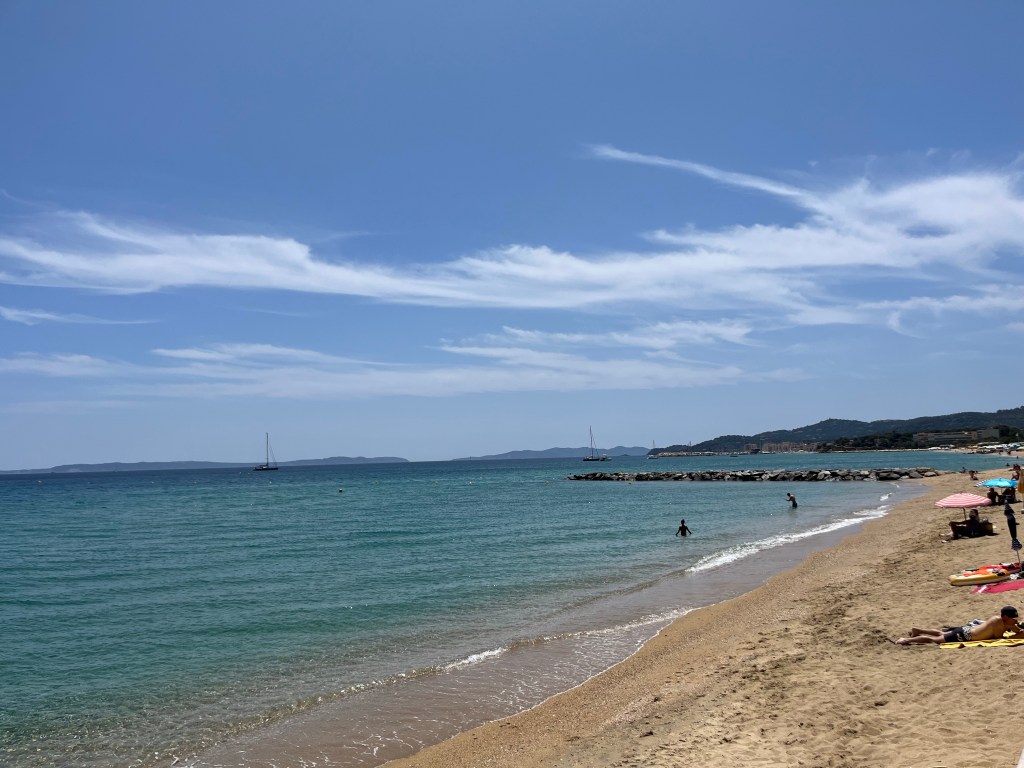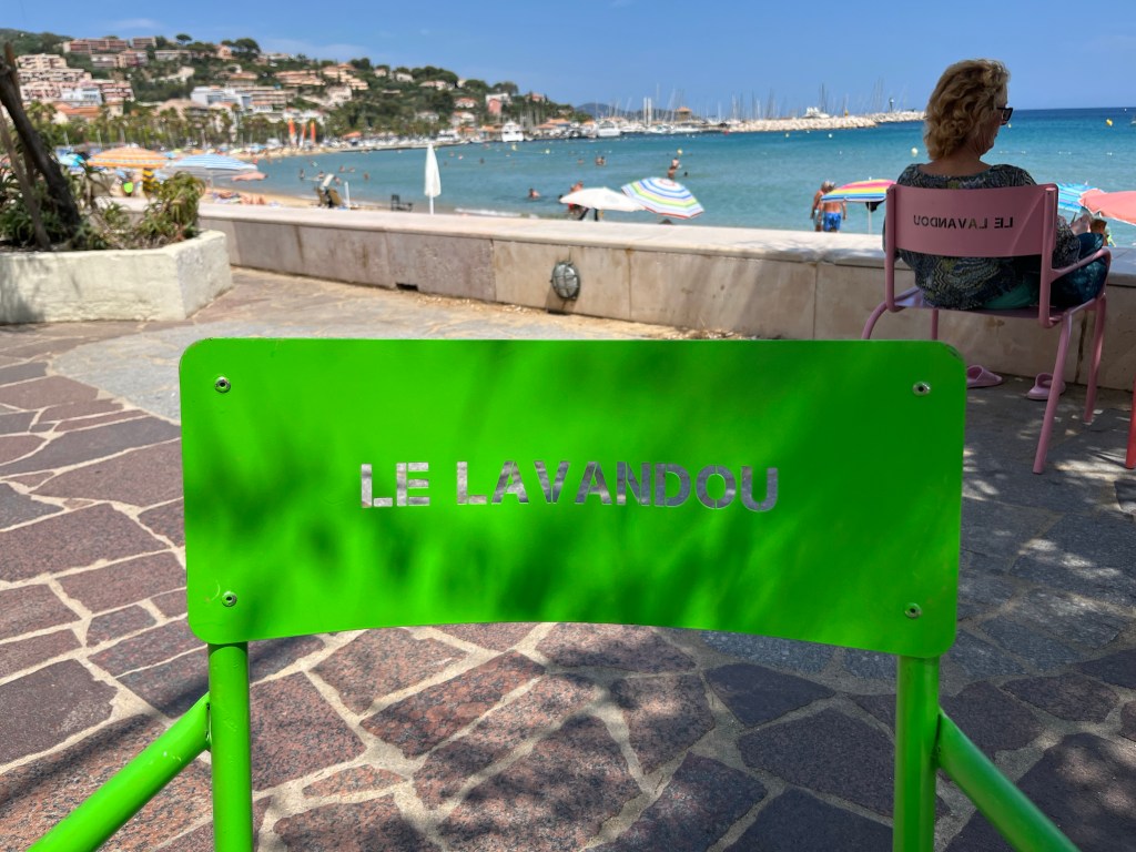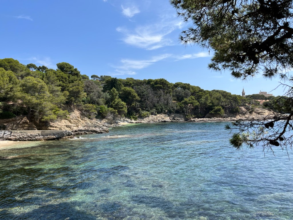 Idag körde vi ner till Rivieran och njöt av det azurblå vattnet. Det var premiär för mig att köra bil på ”la Côte d’Azur”. Så mysigt att få glida fram med min Peugeot från by till by! Le Lavandou var höjdpunkten idag men här kommer först några bilder från Hyères där vi stannade till för att strosa runt lite grand och dricka kaffe. Vi gick in på en Tabac och då visade det sig att han sålde kaffe som vi kunde avnjuta på terassen. Därifrån hade vi denna härliga vy. Underbart!