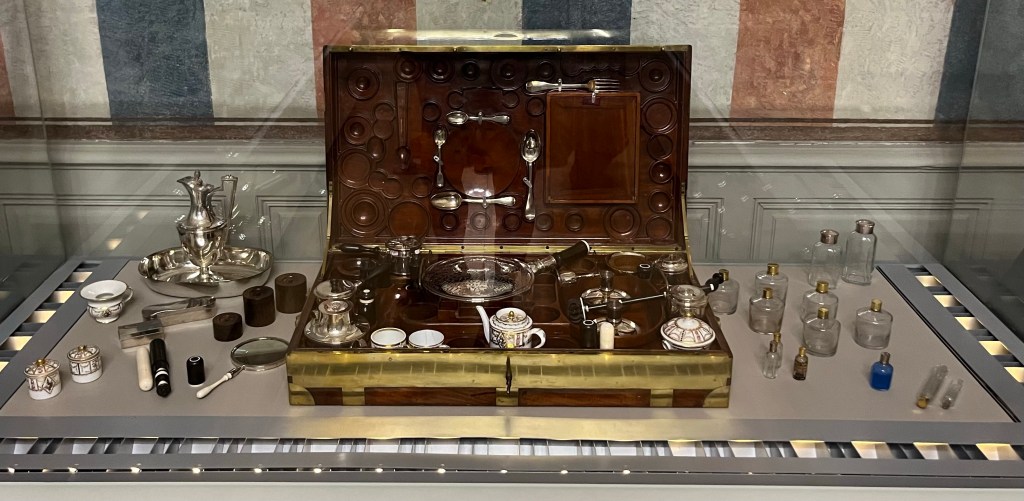 Nedan ser vi det nödvändigaste som Marie-Antoinette behövde ha med sig då hon var på resa. Jag är glad att jag inte behöver ha med mig så många grejer.