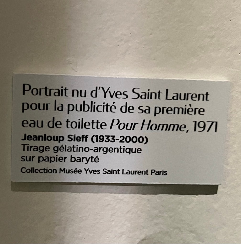 Här har vi ett foto av Yves Saint Laurent naken. Detta foto användes för att göra reklam för hans första eau de toilette Pour Homme (=För män) 1971.