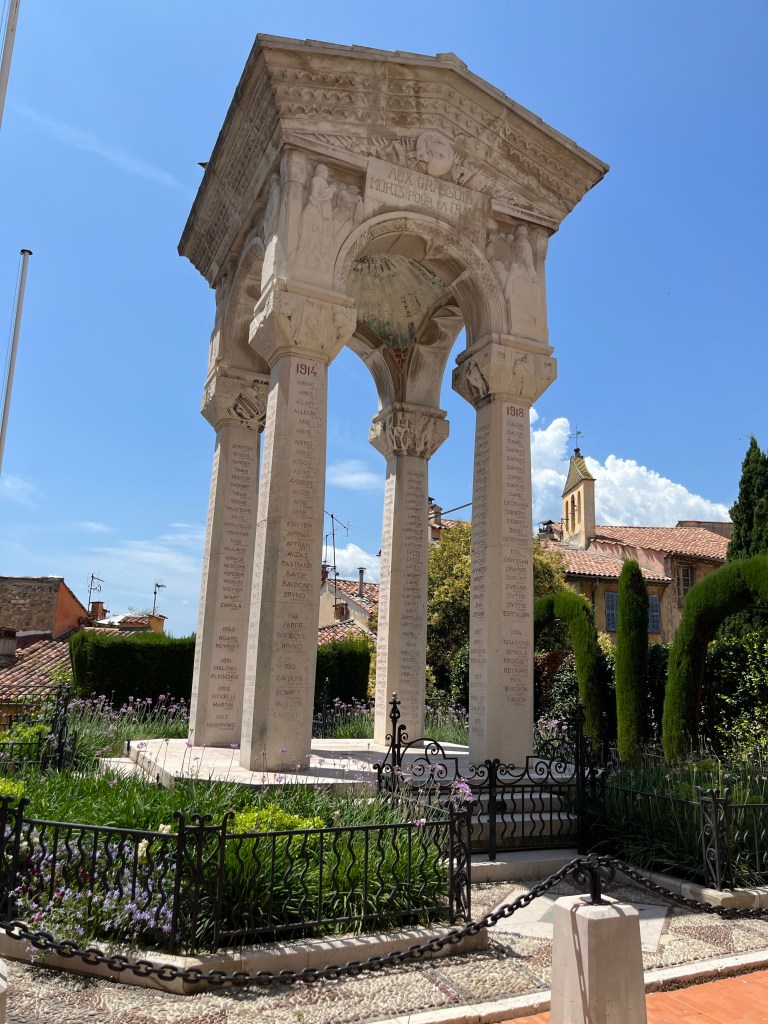 Här ser vi ett monument till minne av dem som fick ge sina liv under första världskriget. Liknande monument finns på många andra platser i Frankrike.