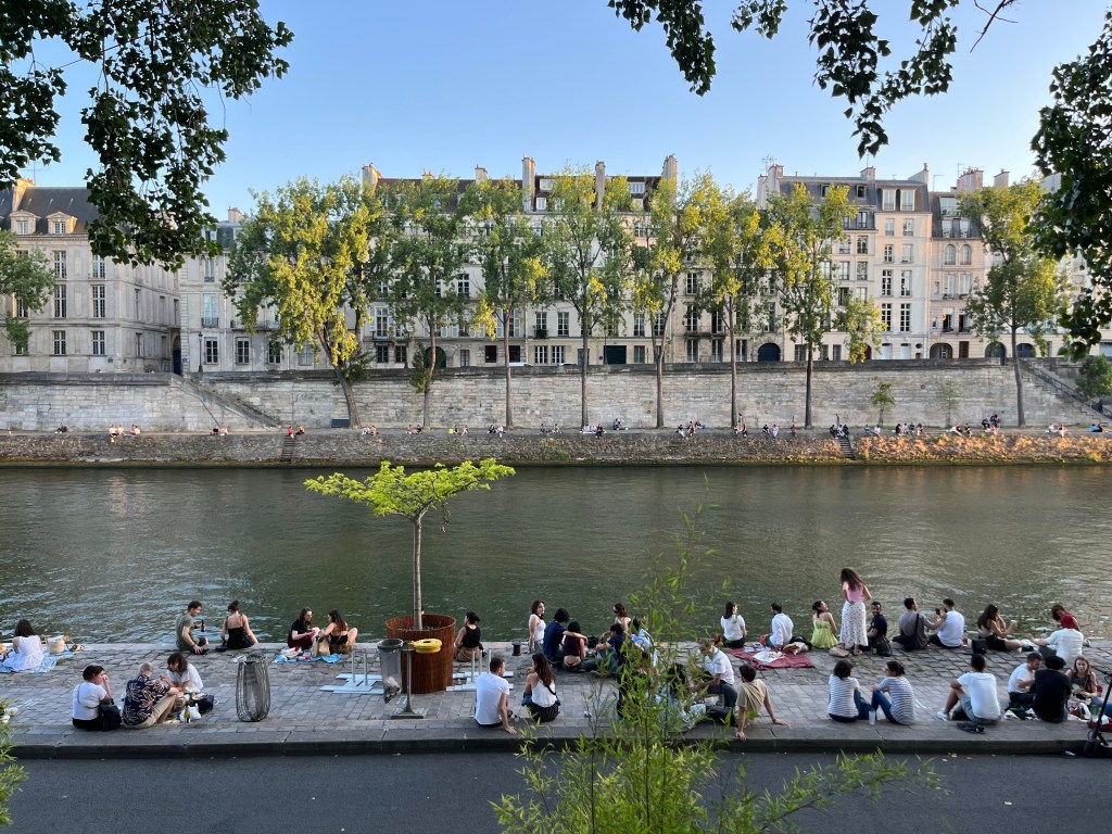 Jag gick vidare till Seine och strosade längs med högra stranden. Överallt fanns människor som fångade kvällen.