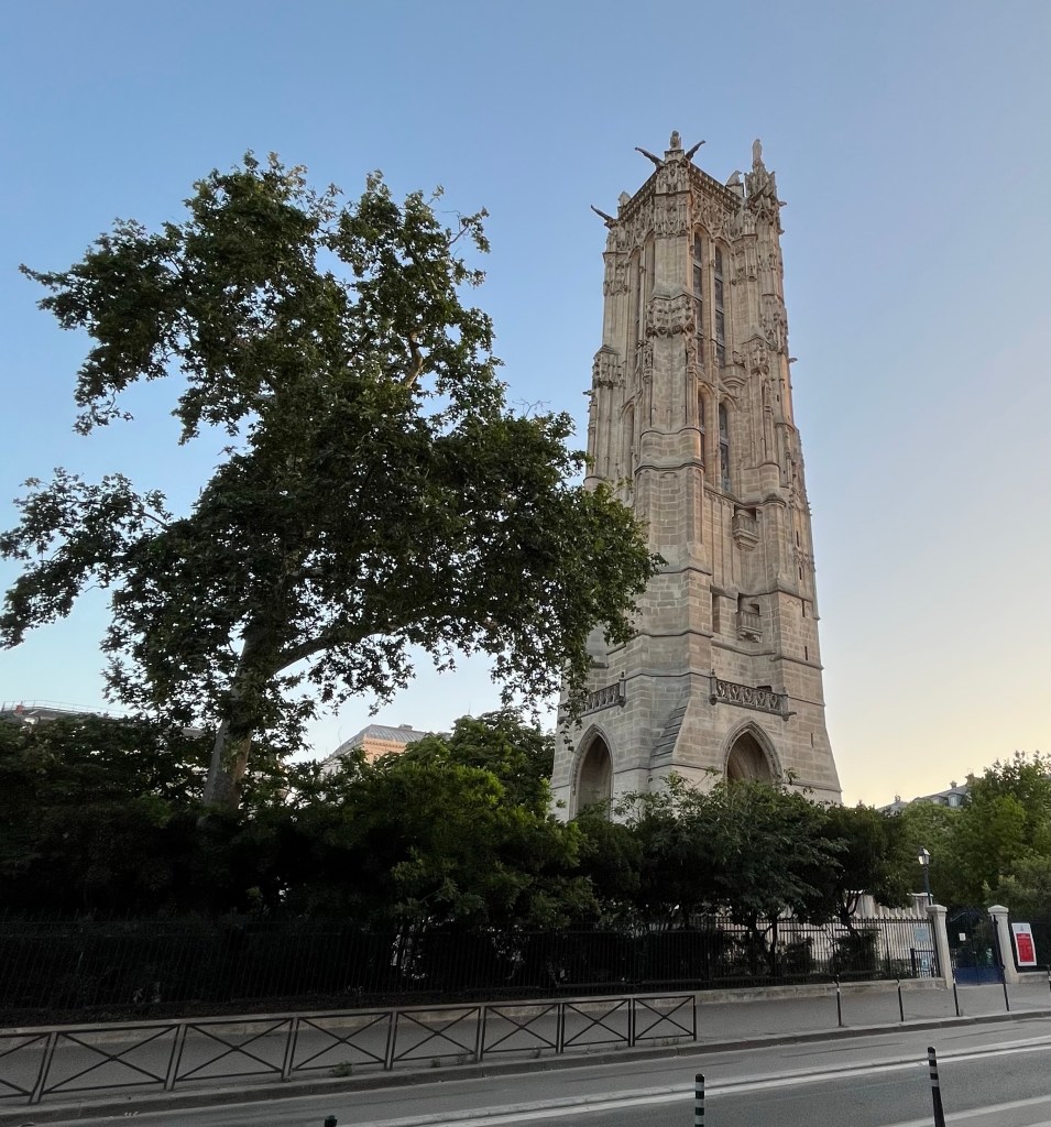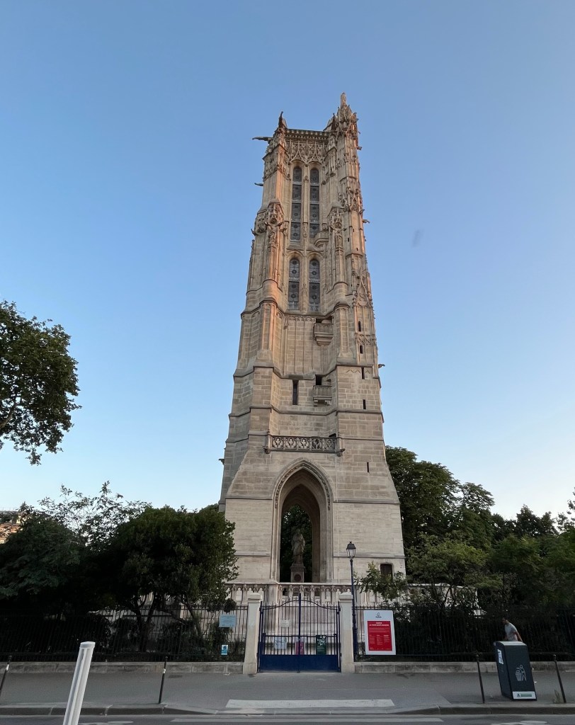 Jag passerade bl a Tour St Jacques. Det är ett gotiskt torn som byggdes på tidigt 1500-tal. Tornet är allt som finns kvar av den forntida kyrkan Église Saint-Jacques-de-la-Boucherie, som var en mötesplats för pilgrimer på väg ut på långa resor. Kyrkan förstördes efter revolutionen. På 2000-talet gjordes omfattande renoveringar för att återställa tornet till sin forna glans.