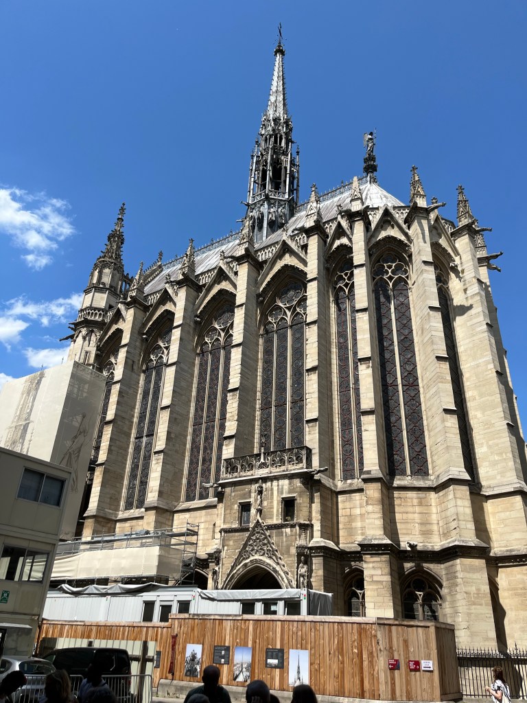 Kapellet ligger mitt i Paris på Île de la Cité och byggdes 1248 av Ludvig IX. Idag är kapellet helt omgärdat av Palais de Justice (Justitiepalatset) som vi ser nedan.