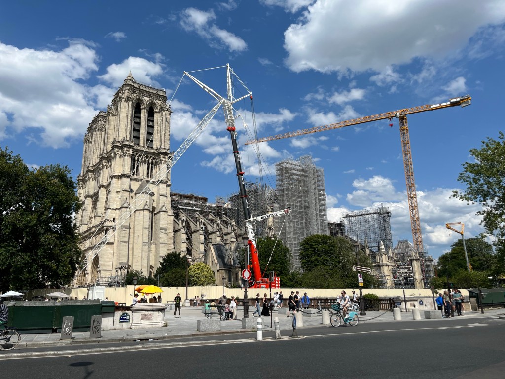 Jag tittade till Notre-Dame och renoveringen går fint. Det kommer att vara klart våren 2024 inför sommar-os i Paris.
