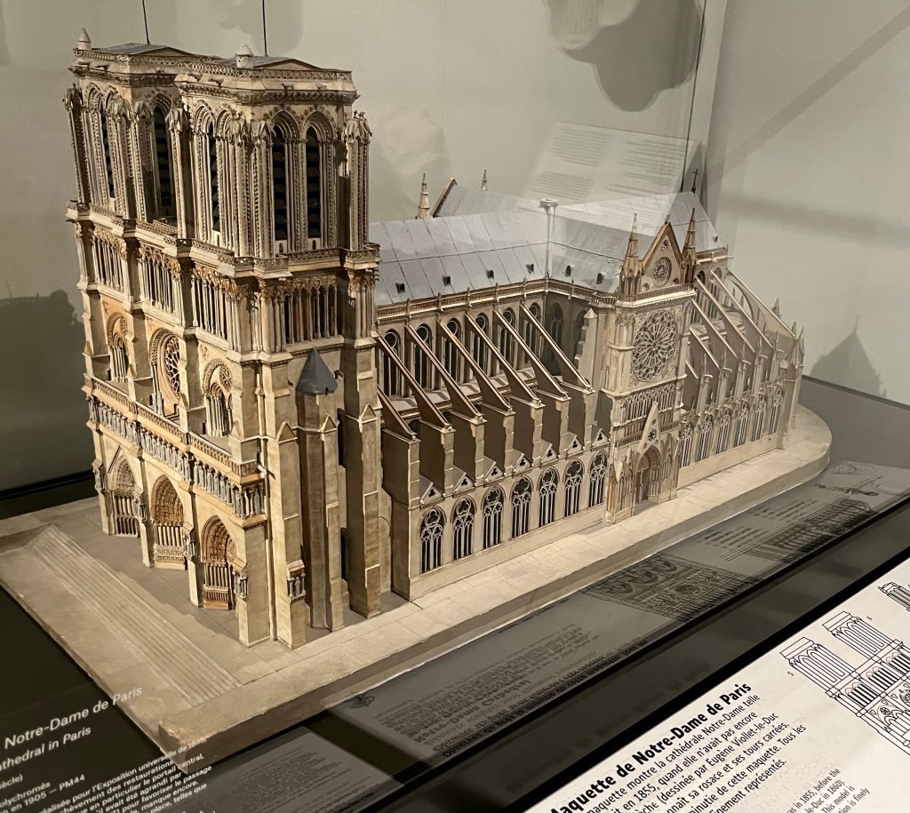 Här ser vi en modell av Notre-Dame, hur katedralen såg ut från början.