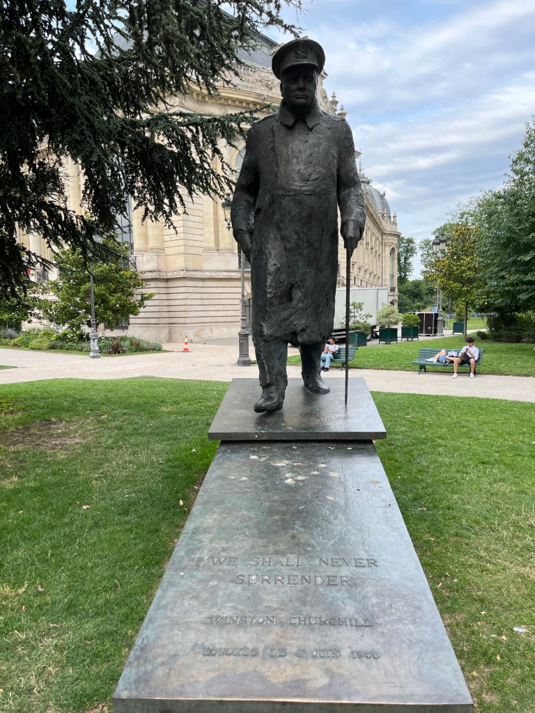 I nära anslutning till Peit Palais står Winston Churchill och tittar på oss.