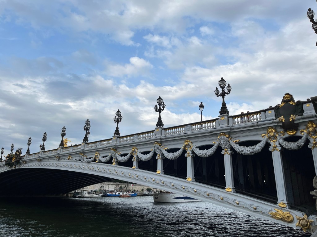 Jag passerade Paris vackraste bro, Pont Alexandre III. Den är 160 meter lång och byggdes inför Världsutställningen år 1900. Den byggdes som minne för den fransk-ryska vänskapen och uppkallades efter tsar Alexander III av Ryssland.