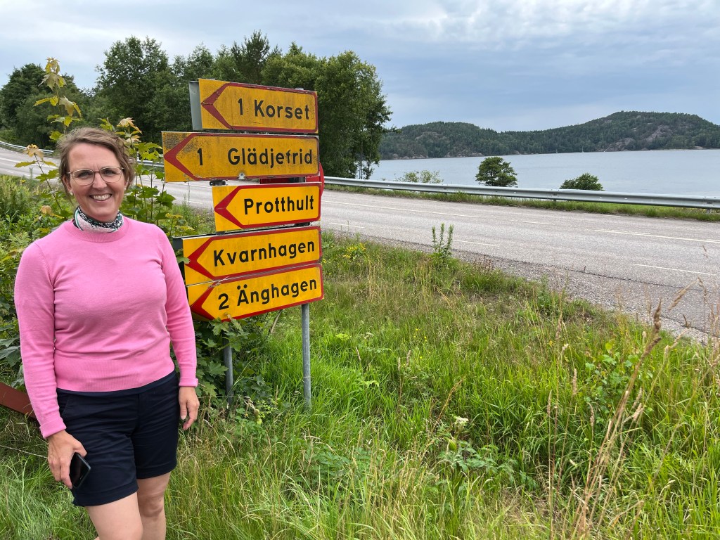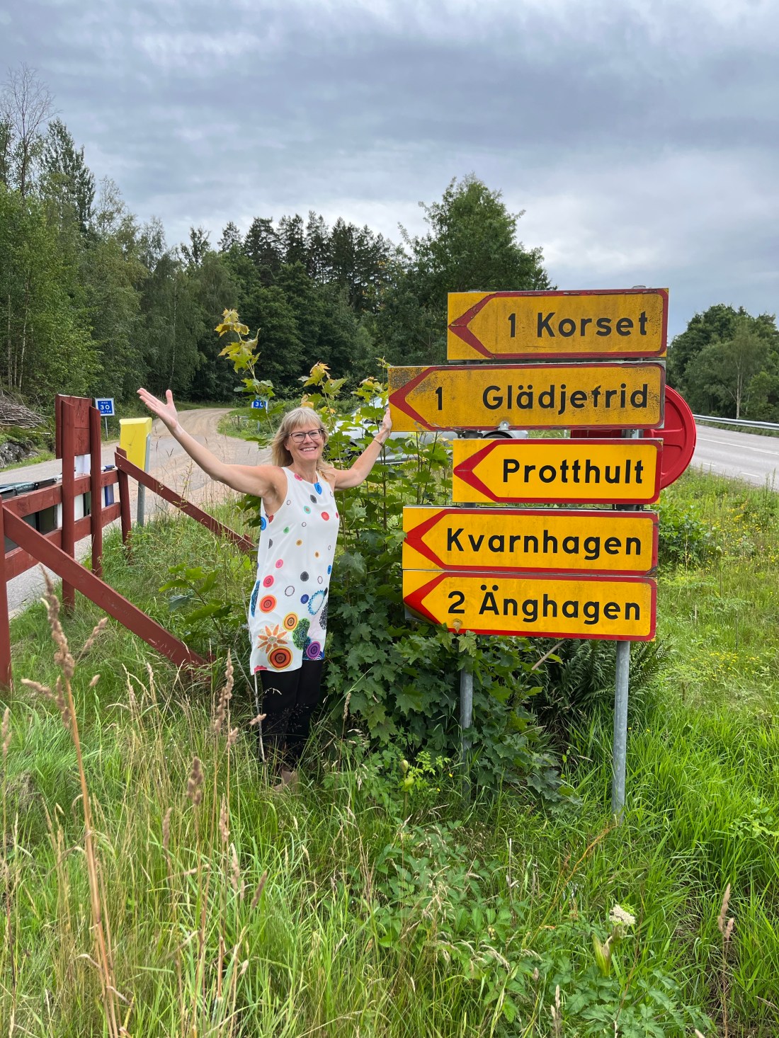 Min goda vän Susanna och jag styrde idag kosan mot Västkusten, Orust närmare bestämt. När vi var nästan framme passerade vi dessa vackra vägskyltar. Vi ville så klart stanna och fotografera. Korset och Glädjefrid, vem skulle inte vilja bo där? Vi åker nog dit någon dag eftersom dessa orter bara ligger några kilometer från vår tillfälliga boplats här på Orust.
