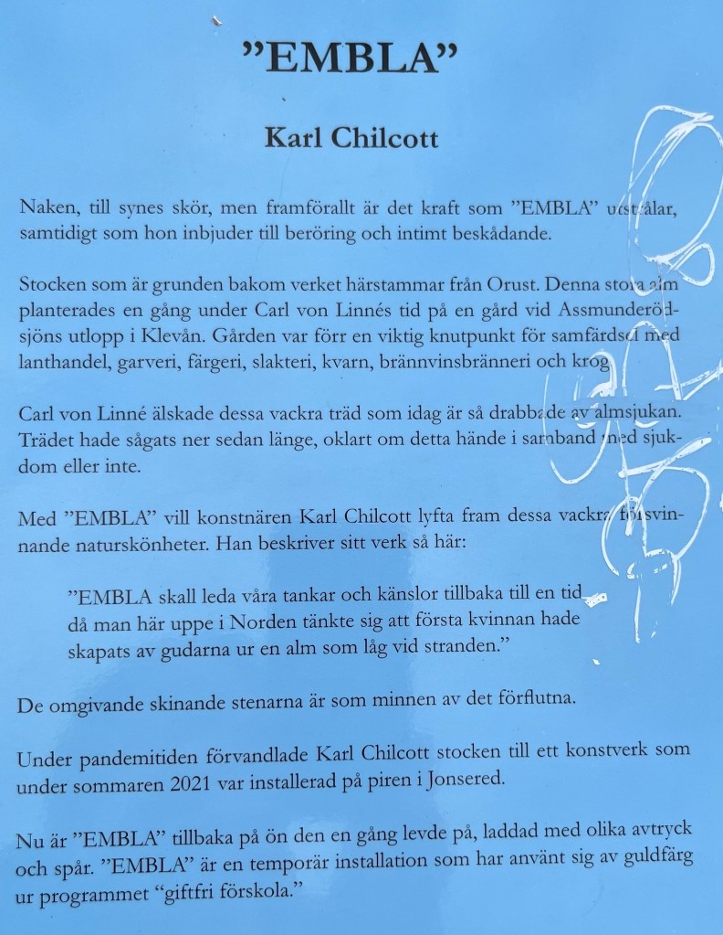 Stocken är från en alm som planterades här på Orust under Carl von Linnés tid (1707-1778). Mer info nedan.