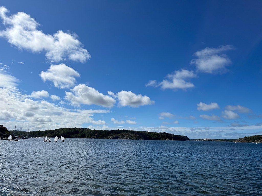 Vi gick sen runt lite i Nösund innan vi åkte vidare till Hälleviksstrand. Där fick vi beskåda när några optimistjollar hade segeltävling. Det var riktigt roligt. Sen gick vi runt på de små gränderna och tittade på vackra byggnader. Vi köpte glass och satte oss en stund intill vattnet innan vi åkte hem till vandrarhemmet i Henån.