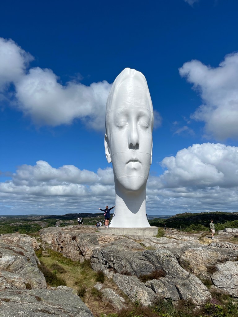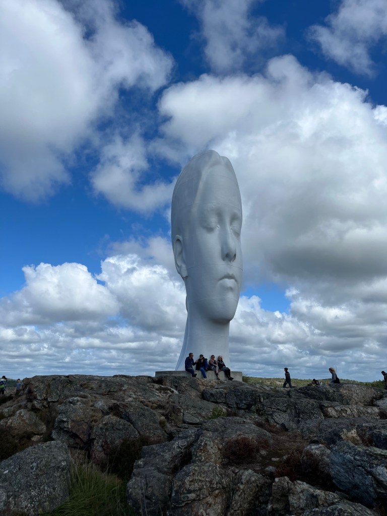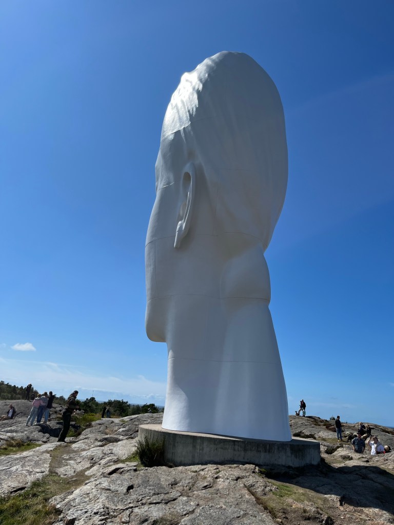 Högst upp ser vi den maffiga skulpturen Anna som är skapad av Jaume Plensa. Det är den finaste skulpturen enligt mig men det var en njutning att vandra runt i detta område och se de andra skulpturerna också naturligtvis. Här finns ett gravfält med ett 90-tal synliga gravar och stenformationer från järnåldern. Arkeologiska utgrävningar har visat att Pilane fungerat som mötesplats för den tidens människor och kulturer, en mångtusenårig tradition som lever vidare i våra dagar.