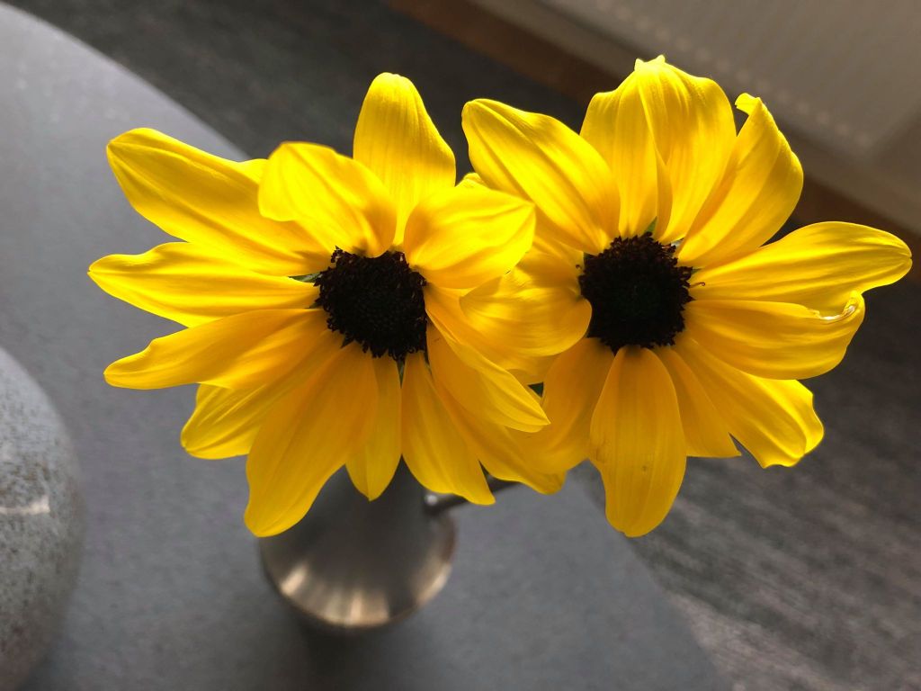 Idag har jag haft en gudomlig dag hemmavid. Jag har inte lämnat huset utan bara varit hemma. Jag har pysslat med lite av varje: kört några maskiner tvätt, pratat i telefon, gjort några blogginlägg m.m. Solrosorna som jag plockat från min solrosplanta pryder bordet och gör mig glad.