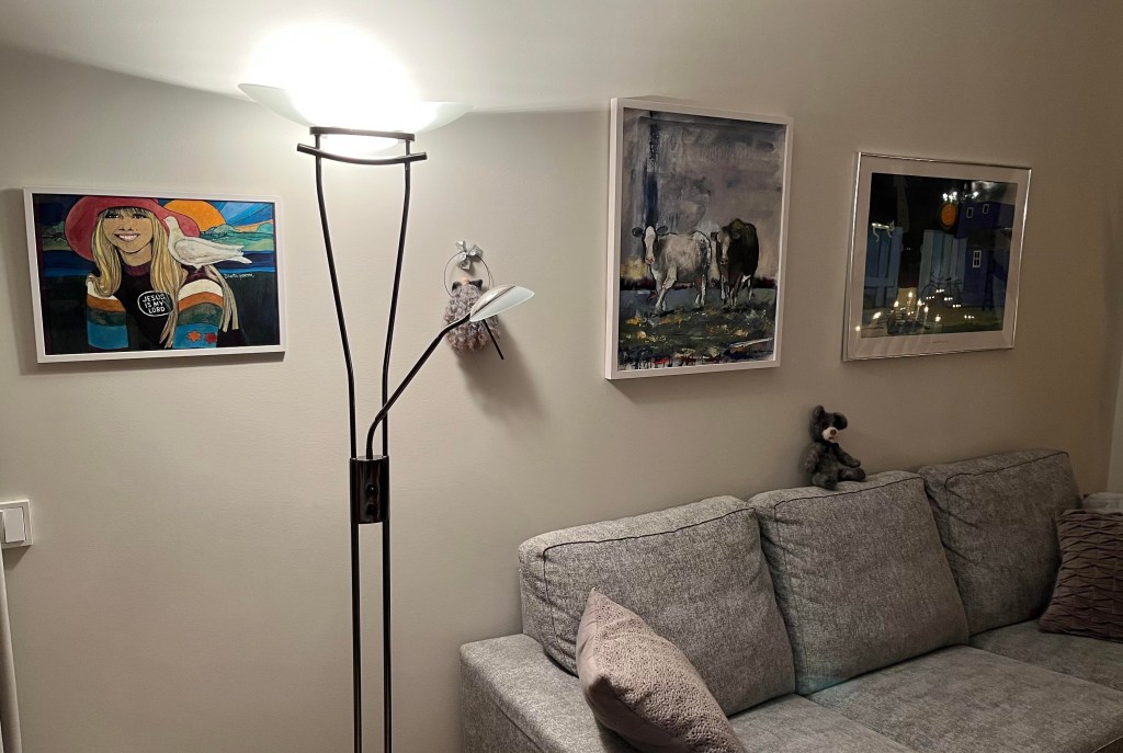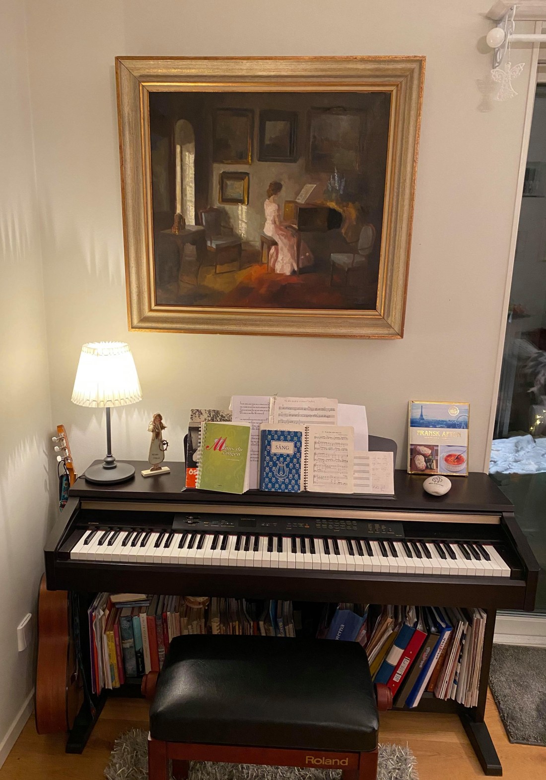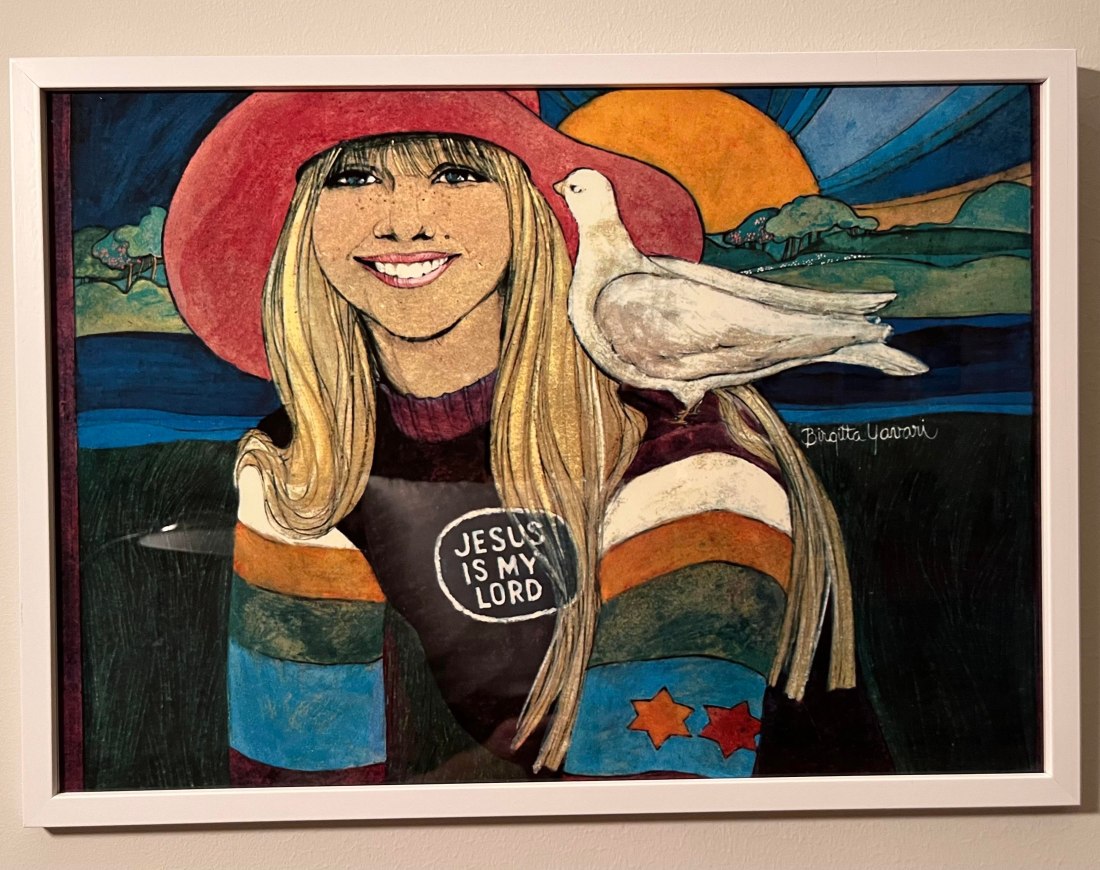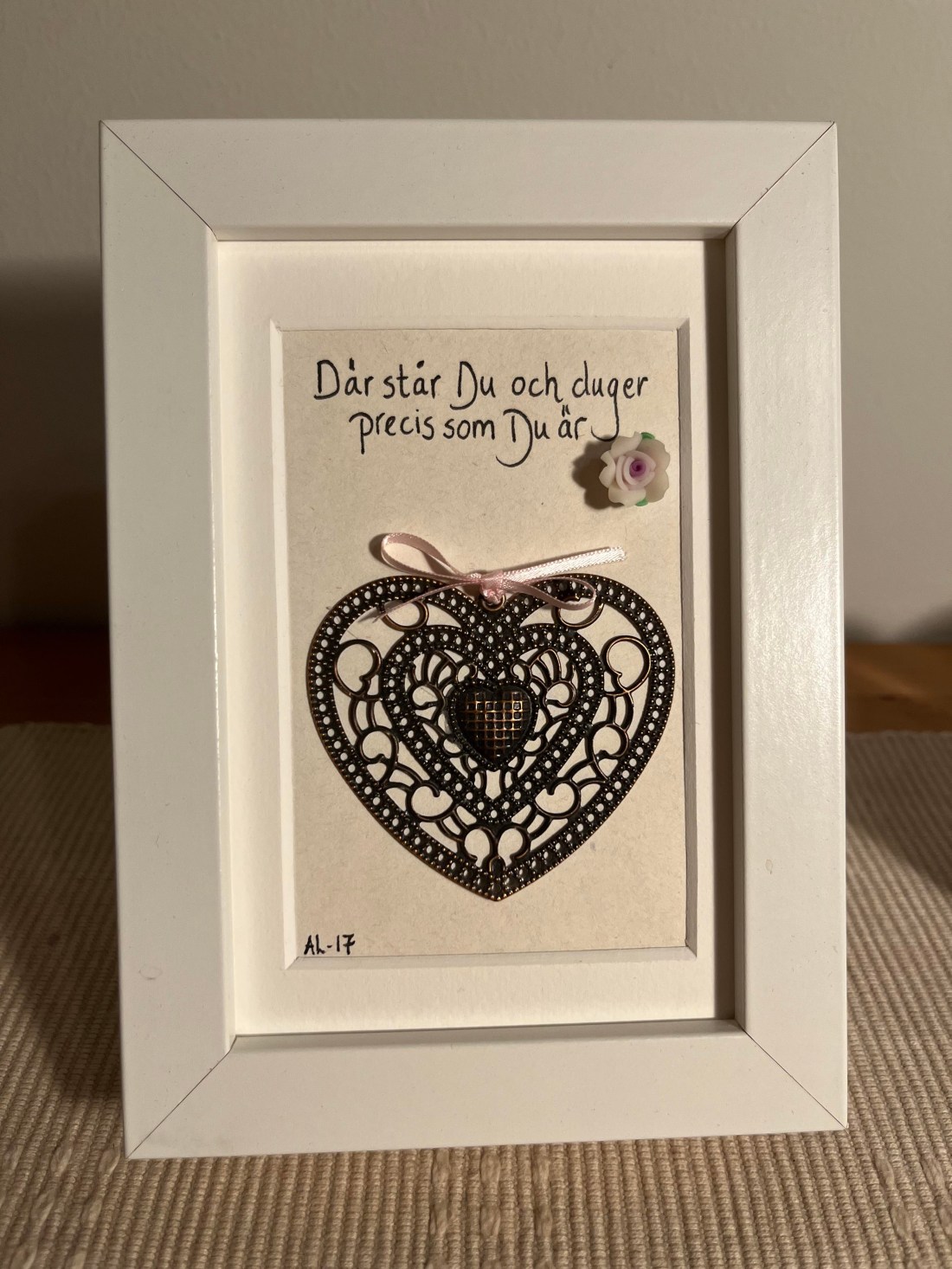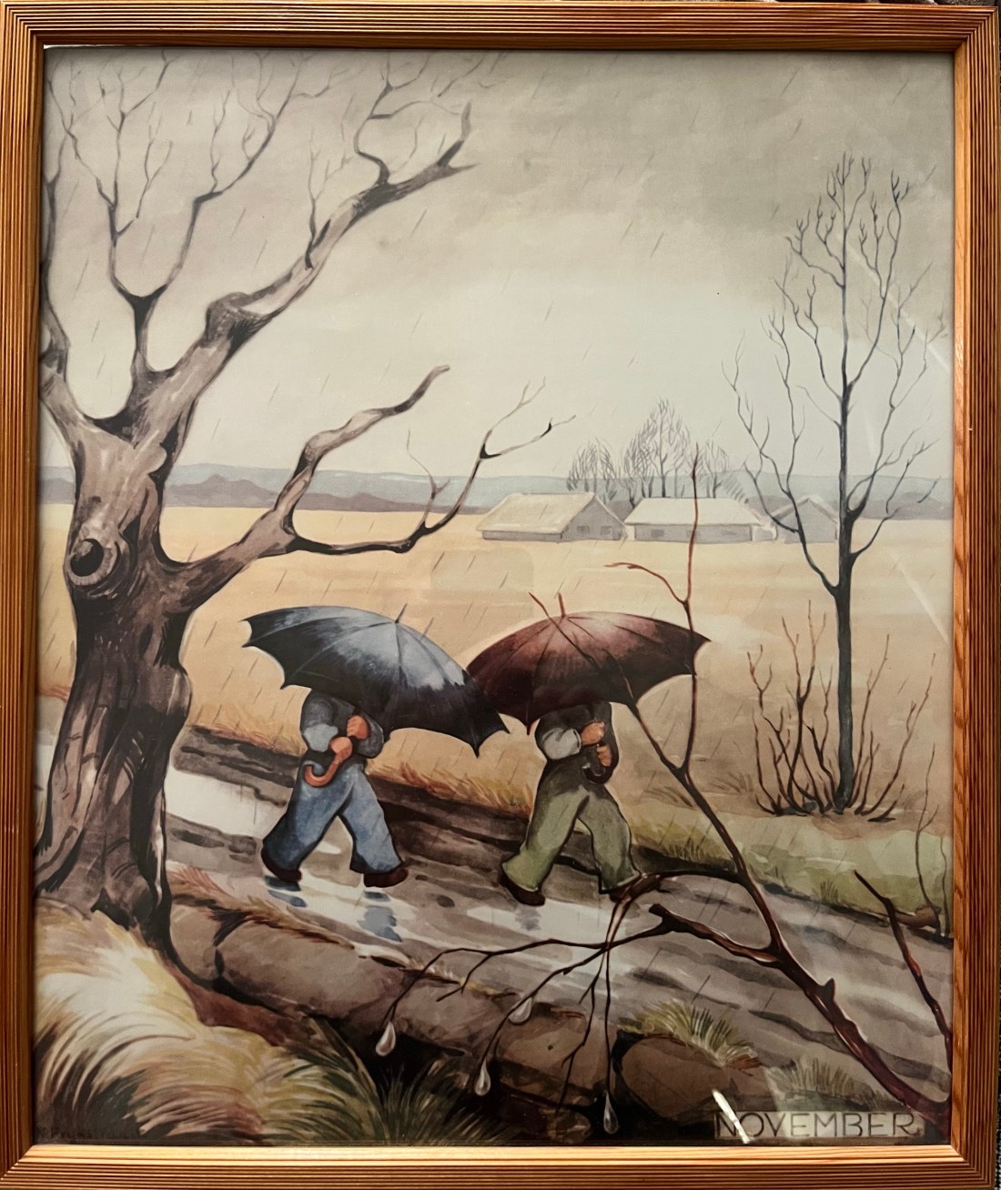 När jag var besökte min moster och morbror för två veckor sen uppmärksammade Barbro mig på en tavla som hängde i deras sovrum. De hade fått den av min bror Tomas och mig på sin lysningsdag. Jag har aldrig lagt märke till den under alla år. Jag blev riktigt glad av att se den. Min kusin Kyllike och jag var brudnäbbar på deras bröllop. Jag var bara två år och åtta månader då.