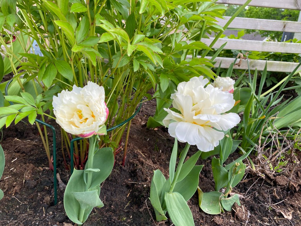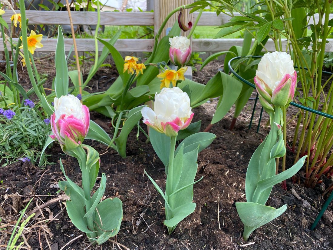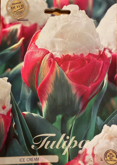 Jag älskar mina tulpaner. Nu håller Tulipa Ice cream på att slå ut för fullt. De små godingarna slår ut i olika takt här i rabatten. Här ser vi en tulpans utveckling från knopp till utslagen blomma. Tulipa Ice cream – så ljuvlig liten glassbakelse! ![]()