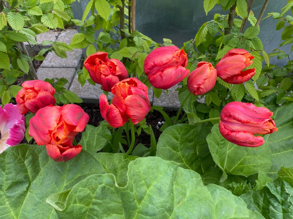 Mina tulpaner vid namn Avignon Parrot har nu slagit ut och trivs fint tillsammans med Silver Parrot bland alla rabarber. Min trädgårdslycka! Kan inte se mig mätt på de färgsprakande mästerverken. ![]()