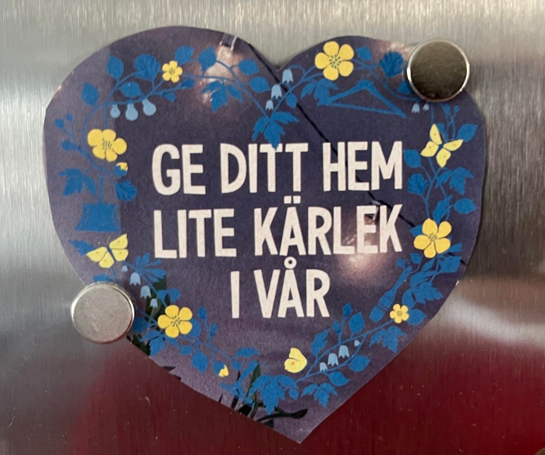 Jag fortsätter presentera små grejer som finns på min kyl & frys. Detta söta hjärta har jag haft uppsatt några år. Jag klippte ut det ur en tidning. Texten lyder: Ge ditt hem lite kärlek i vår. Hur kan man då visa sitt hem kärlek?