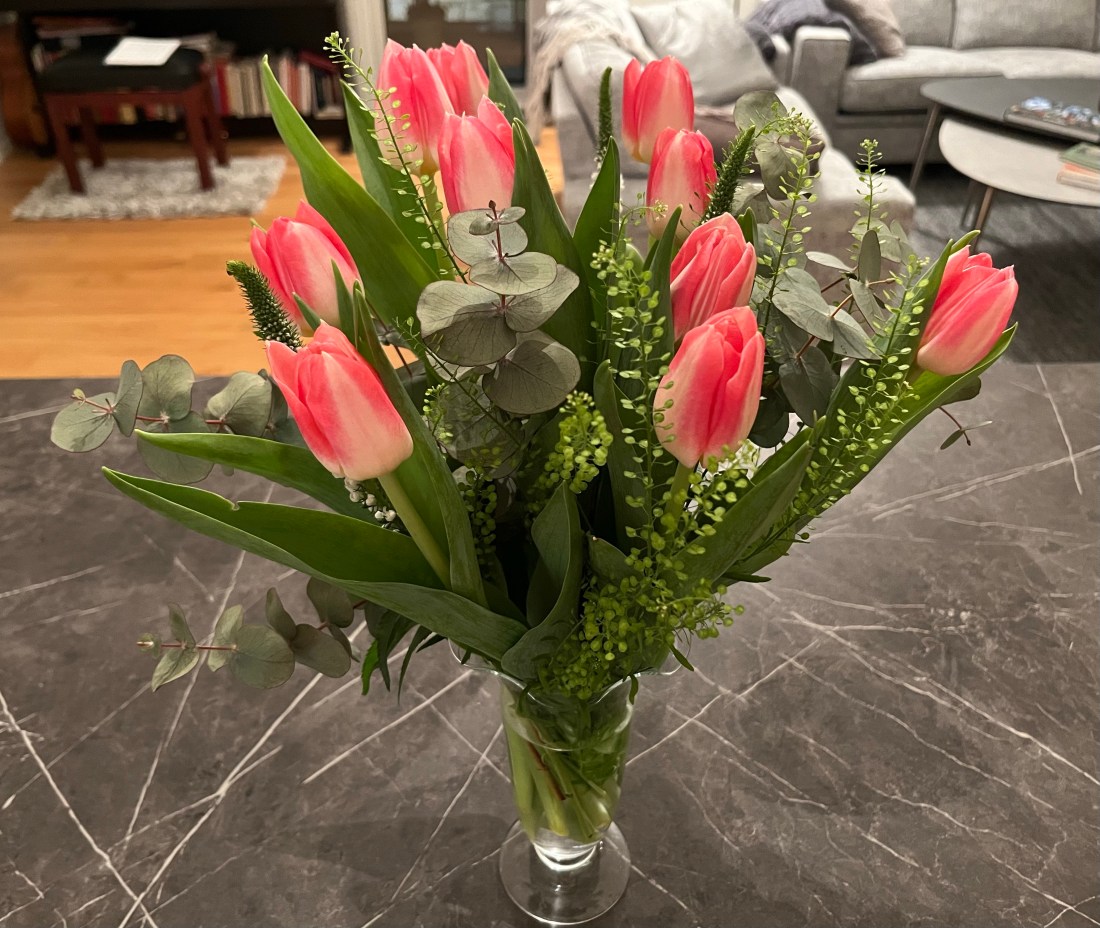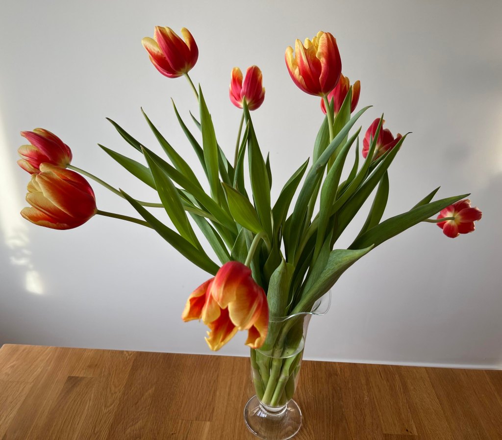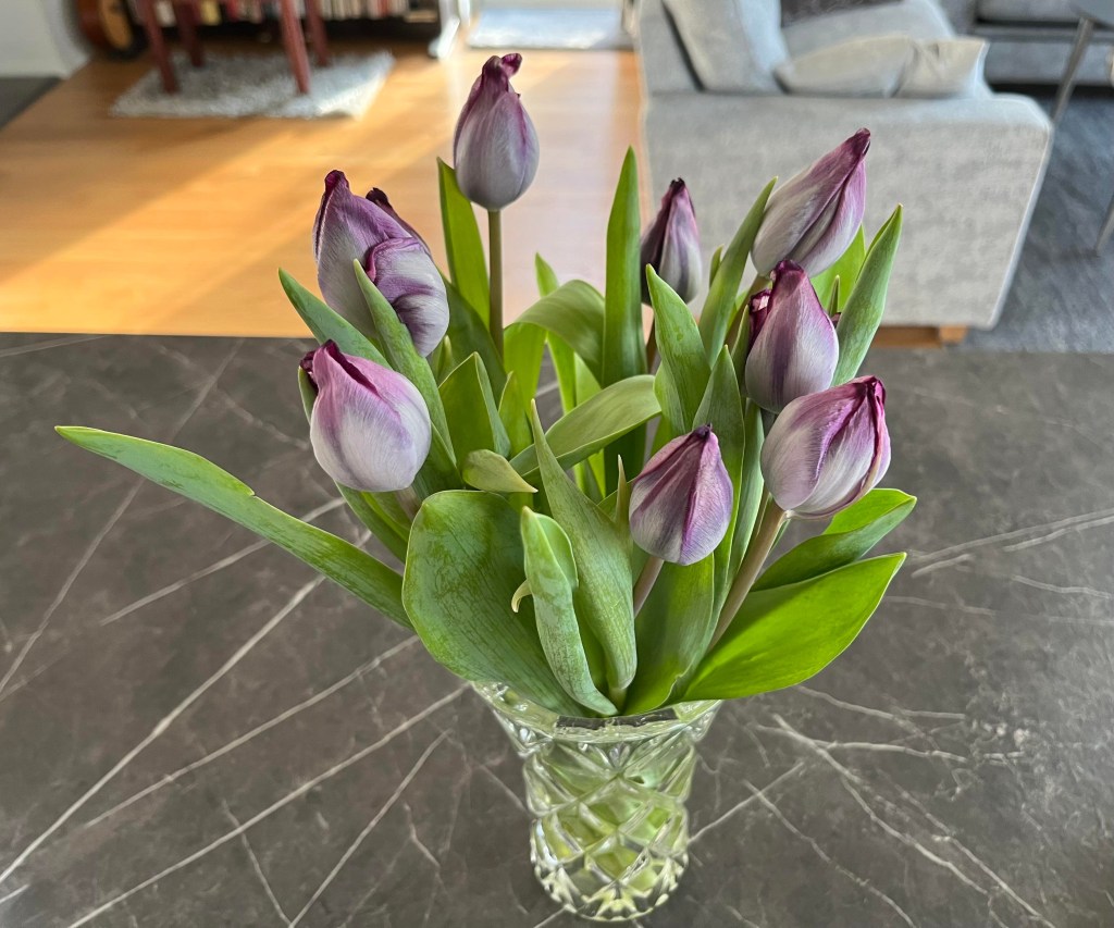 I måndags köpte jag min första bukett tulpaner för året. Nu har de slagit ut och är helt ljuvliga. De är som ett levande konstverk, tycker jag. Vårlycka!