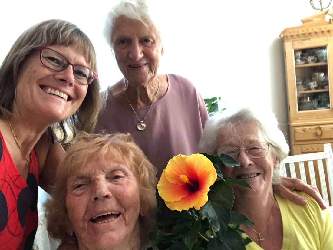 Idag fixade jag en liten fest för Inga som fyllde år förra veckan. Jag kände att jag ville fira henne lite extra för hon är så snäll och betyder så mycket för mamma. Ja, det var väl ingen fest direkt men det var en god middag med efterrätt för oss fyra. Oj, vad vi hade roligt! Jag kände mig helt upplyft. Kan säga att det ibland inte är så stor skillnad på tonårstjejer och 85-åriga damer. Samma fniss, skratt, förtroliga samtal och tokroliga kommentarer. Jag mår så bra här ”hemma” och tackar Gud för den omsorg Han har om oss alla.