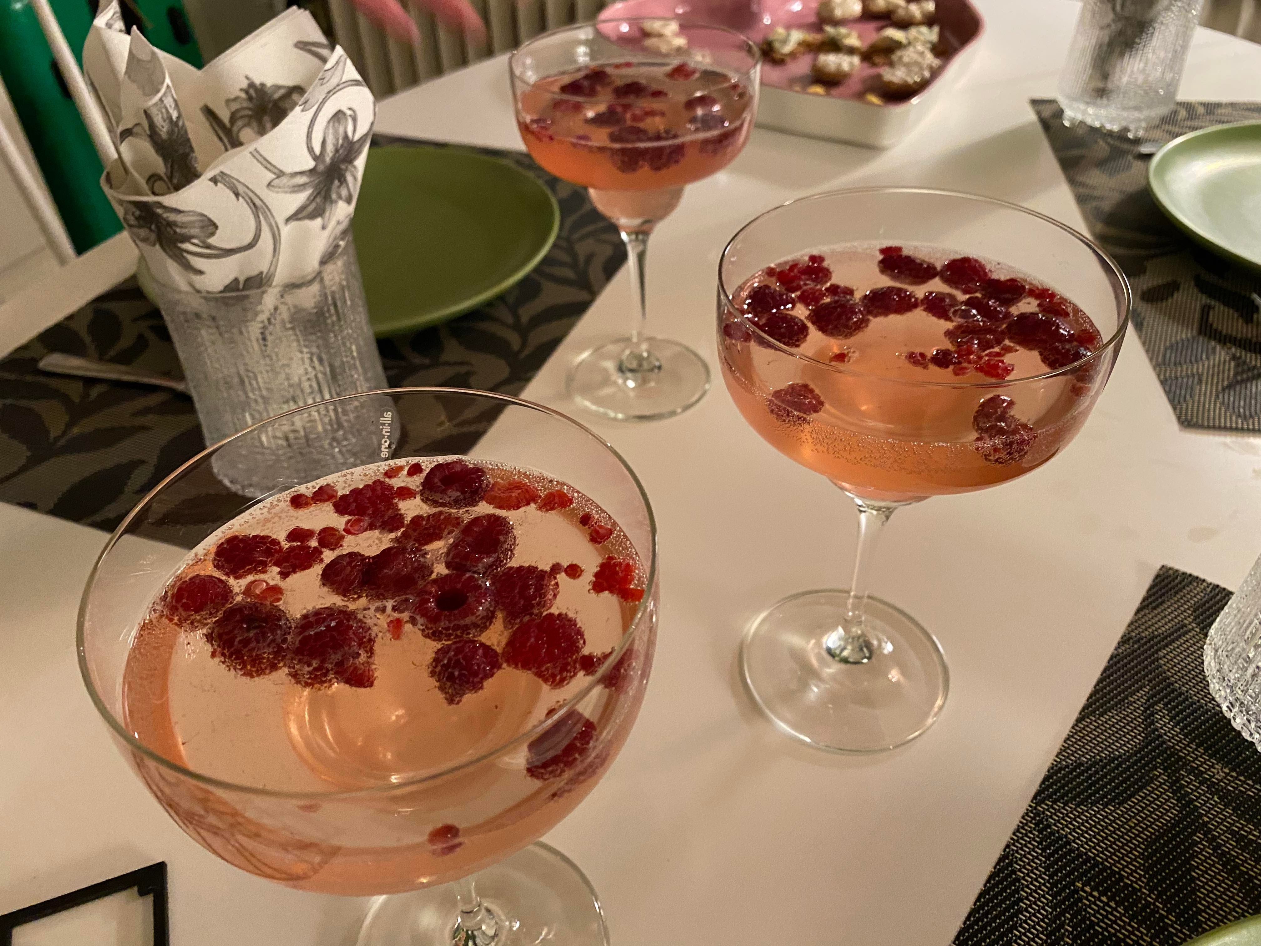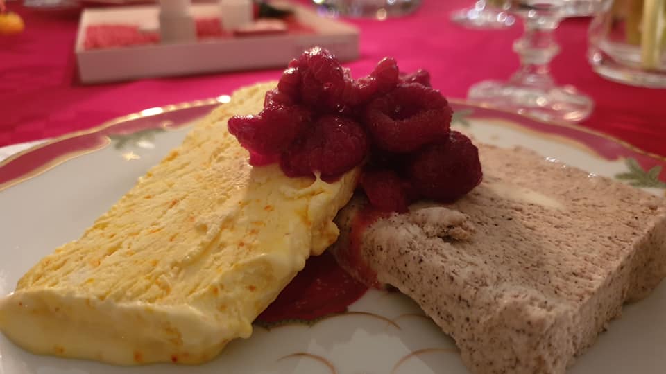 Till dessert blev det saffrans- och kanelparfait med hallon. Jag gör alltid stora satser av detta till jul och de räcker ganska länge. Jag tycker mycket om denna dessert och det verkade som att gästerna också uppskattade det.